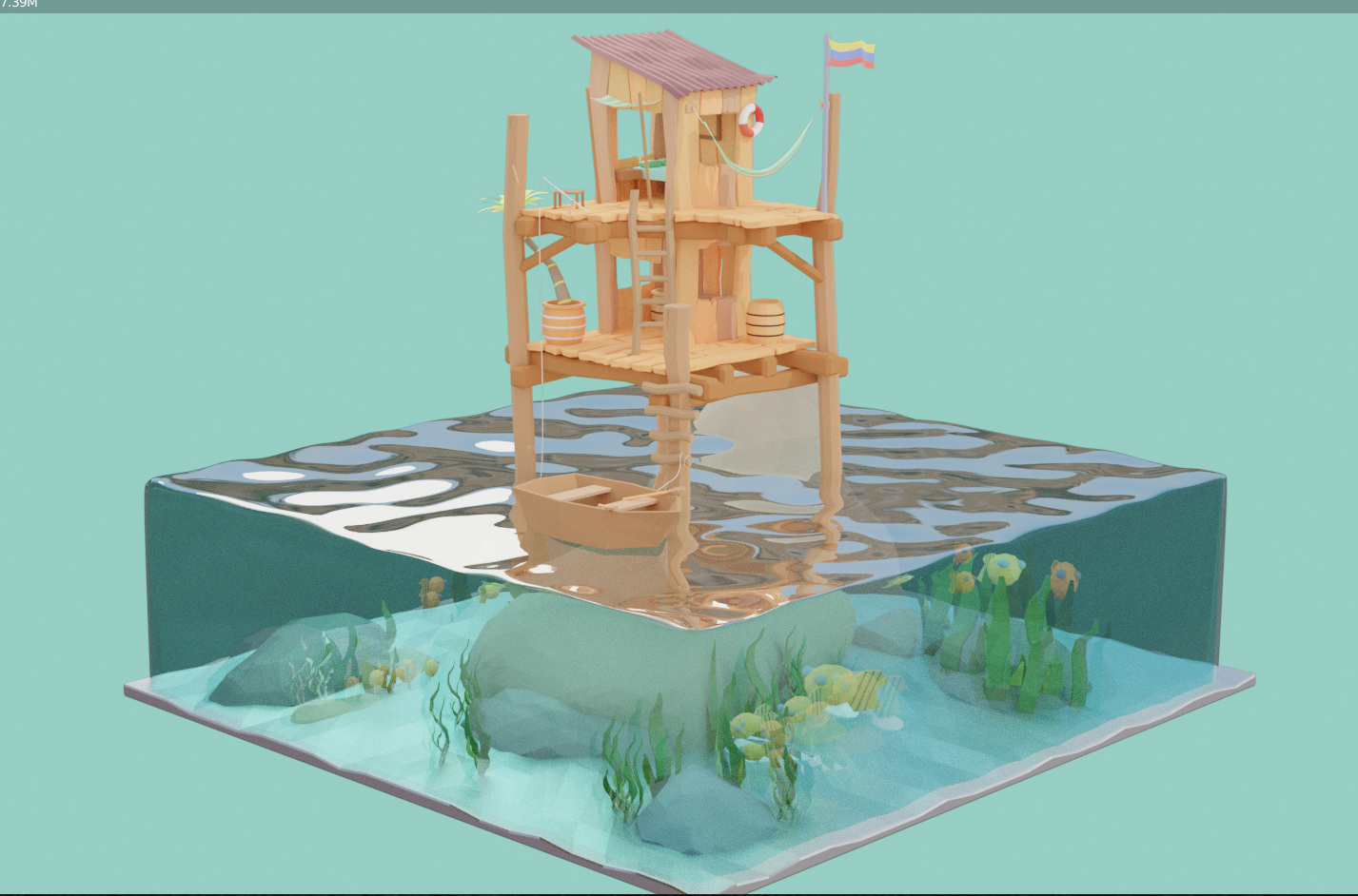 Hace poco termine mi primer modelo de render y pues me gustaría saber si de pronto alguno sabe de un tutorial o información donde pueda saber cual es la mejor forma de renderizar en dicho programa y que pueda lograr el siguiente resultado, al cual le pueda sacar imágenes en alta calidad ya que la que e podido sacar salen pixeladas