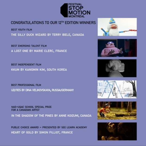 La edición del Festival Stop Motion Montreal concluyó el pasado 19 de septiembre, en la ceremonia se han reconocido a los creadores de los cortometrajes premiados.