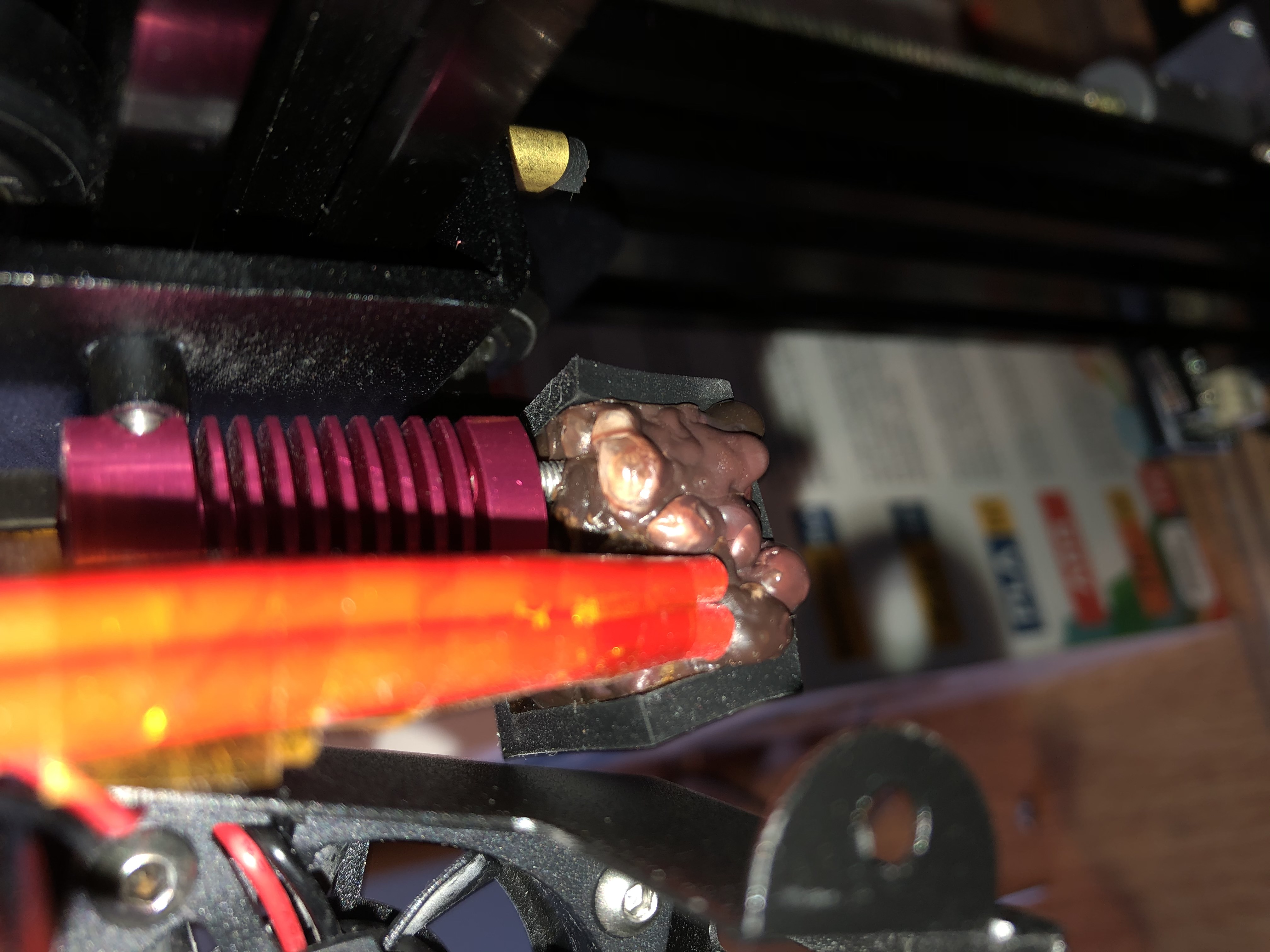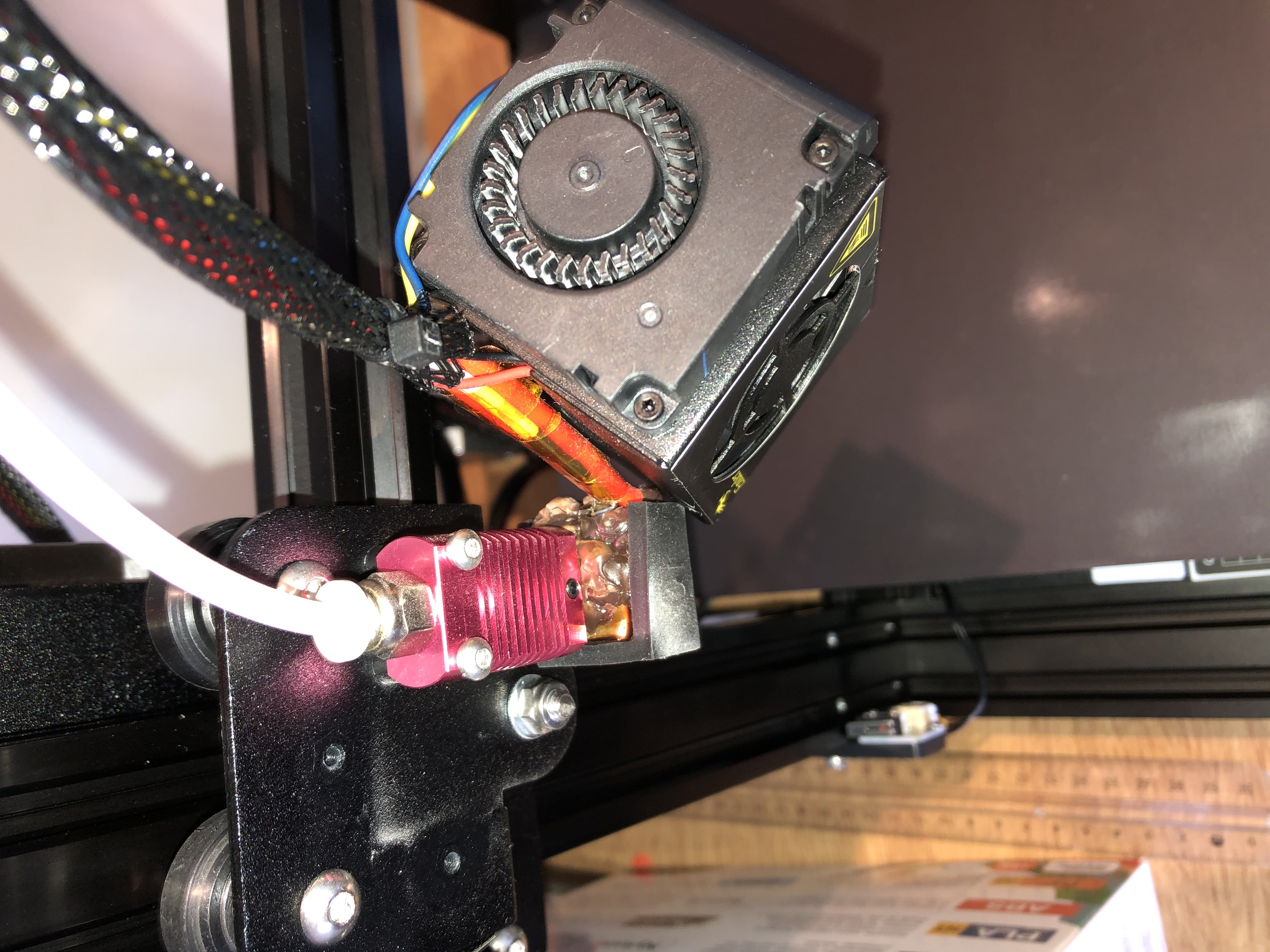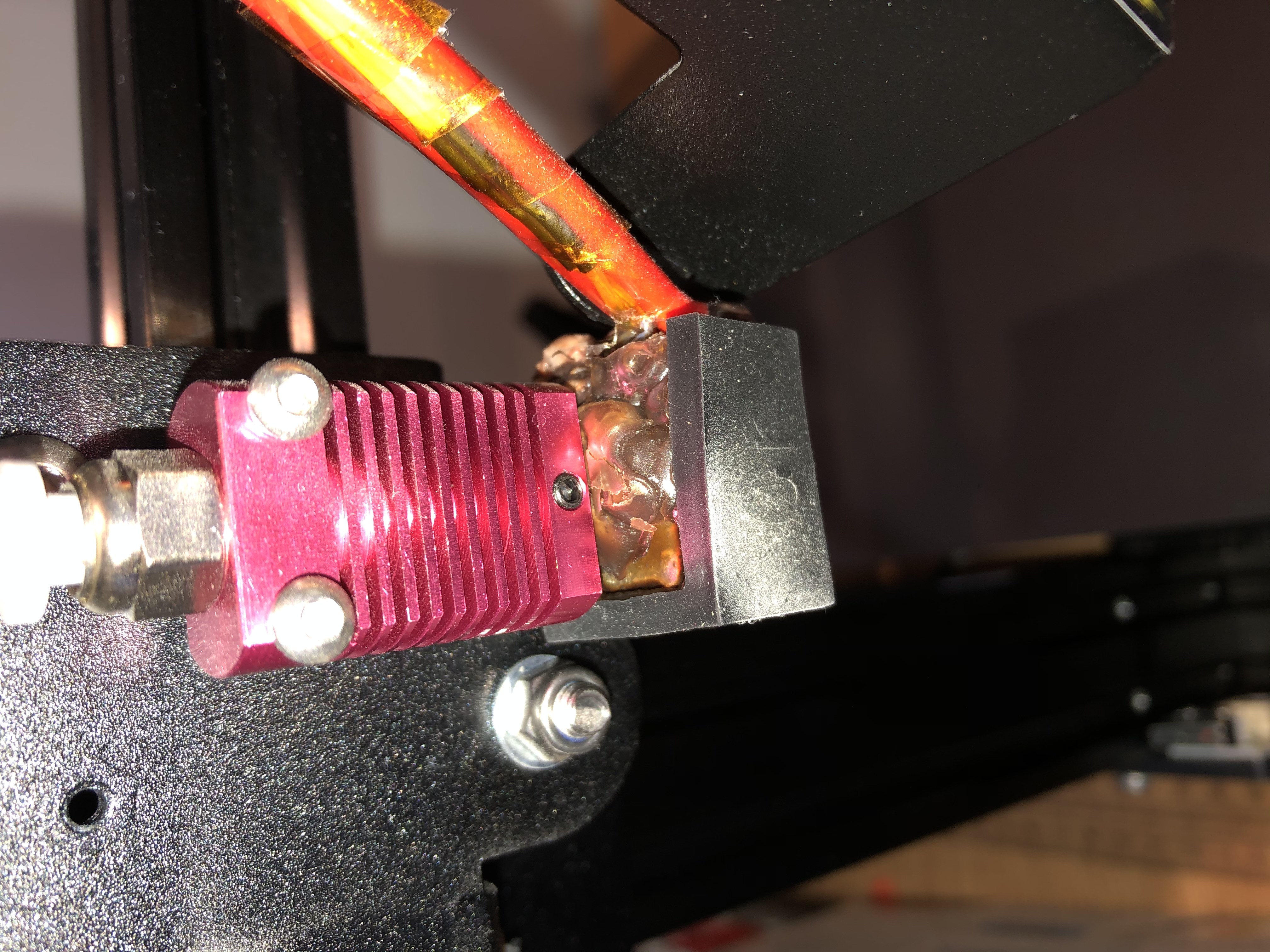 Me compré una Ender 3 pro hace unos 7 días y hoy imprimiendo empecé a sentir olor a quemado, cuando miré qué era en el fusor se estaba derritiendo algo que todavía no se que es, les paso fotografías para que lo vean.