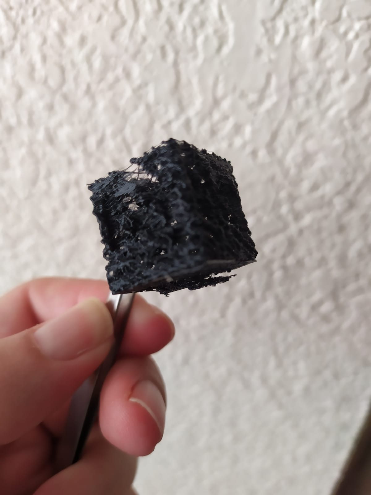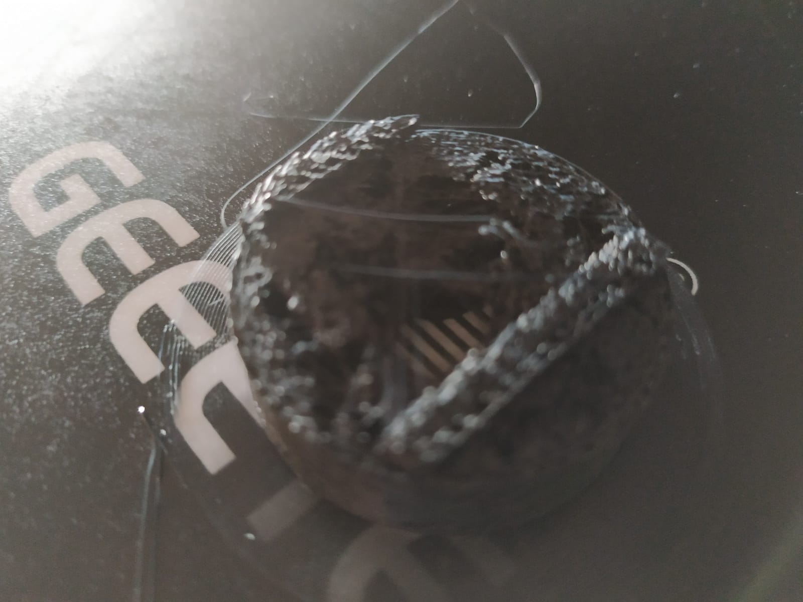La pieza impresa, que es una pequeña tapadera, tiene los bordes irregulares, no queda solida con bastantes pequeños huecos, y la altura va de menos a mas. quedando bastante mal.