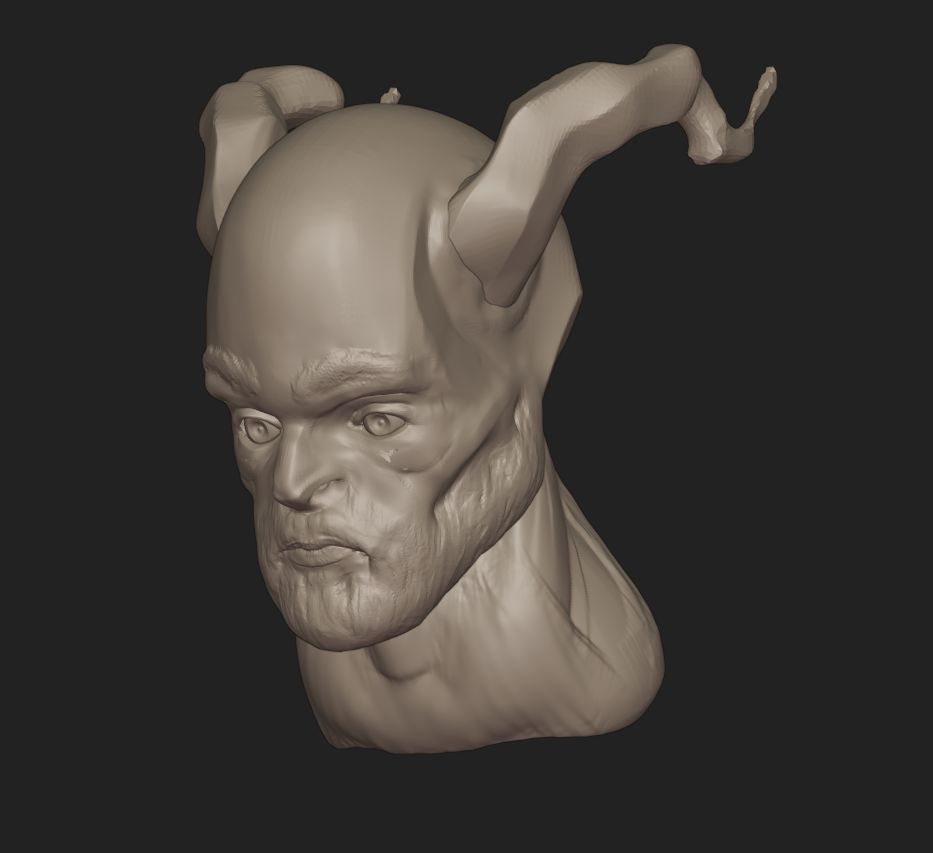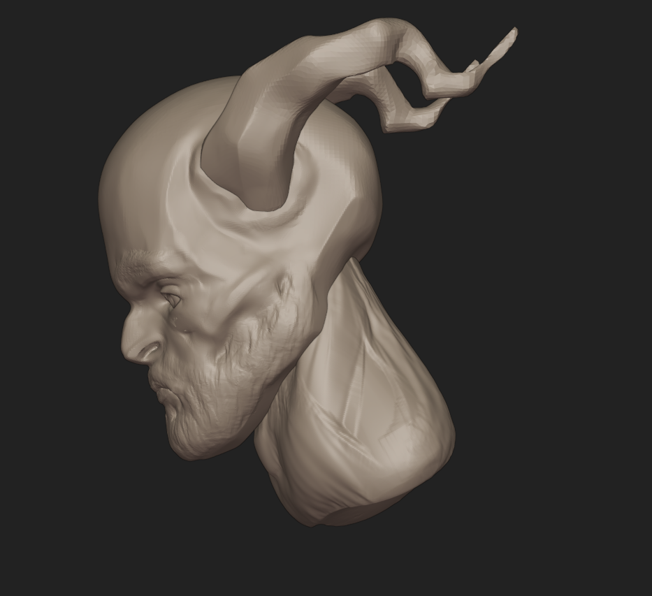 Esta vez me he centrado primero en las formas grandes antes de meterme con los detalles. Aun así me he centrado demasiado tiempo en la cara antes de tiempo, pero he sabido rectificar a tiempo y pasar a otra cosa. De nuevo, no me ha dado tiempo a hacerle las orejas. Modelado en unas 3 horas.
