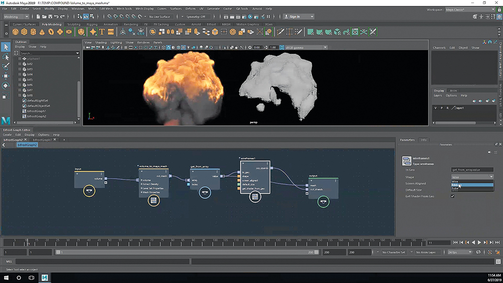 El conjunto de herramientas de simulación Bifrost para Maya recibe una nueva opción para cuestionar simulaciones en la nube.