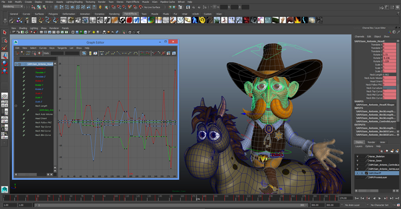 Los personajes están diseñados, modelados, mapeados por texturas y equipados con controles de animación dinámicos para proporcionar un rango prácticamente ilimitado de movimiento corporal, capacidades de actuación y expresiones faciales.