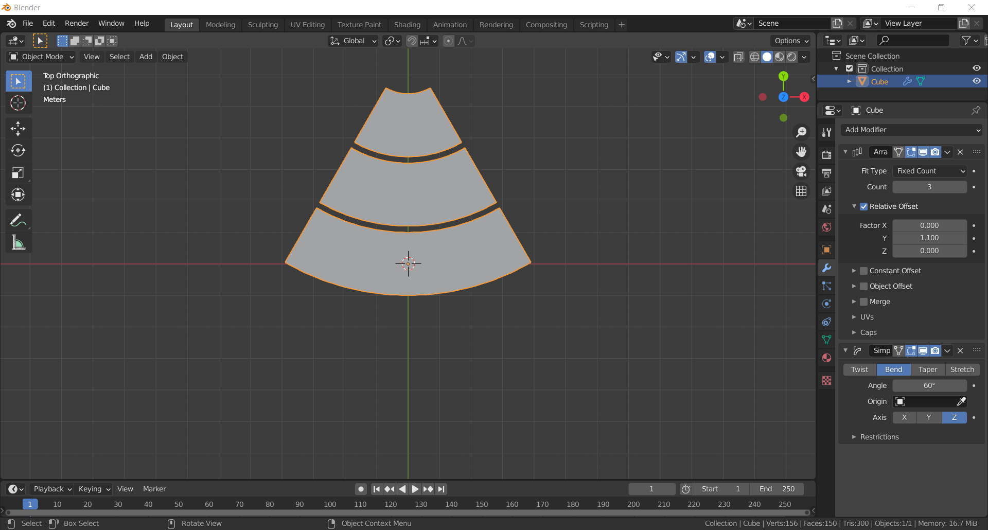 Use los siguientes modificadores como lo hace el señor en este tutorial: 1 - Mirror/ 2- Subdivisión Surface/ 3- Array / 4- Simple Deform