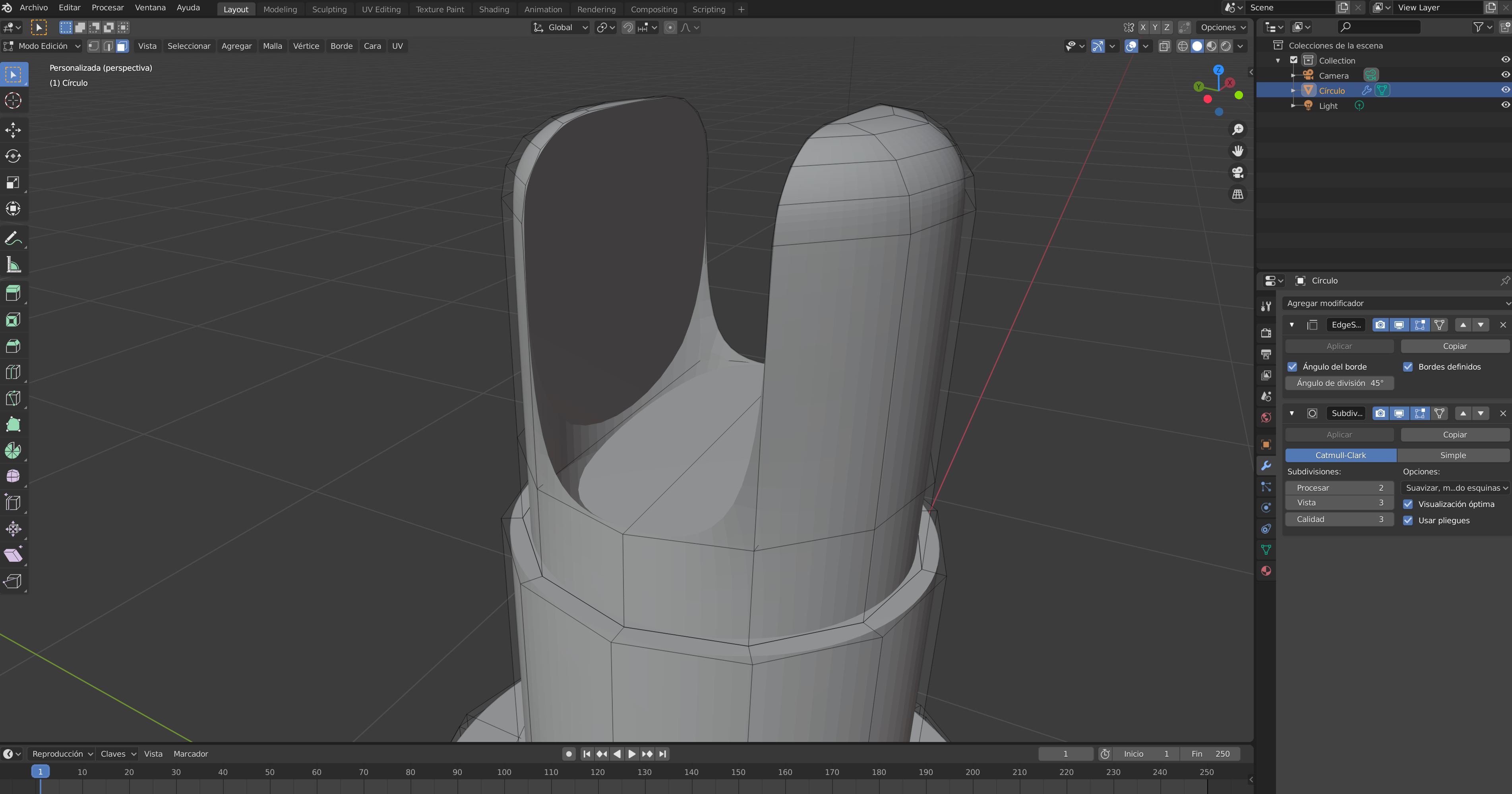 El modificador Edge Split es un poco complicado, pues corta la geometría por los Edges, o sea que según donde lo coloques, puede dar un resultado muy diferente al cortar las partes.