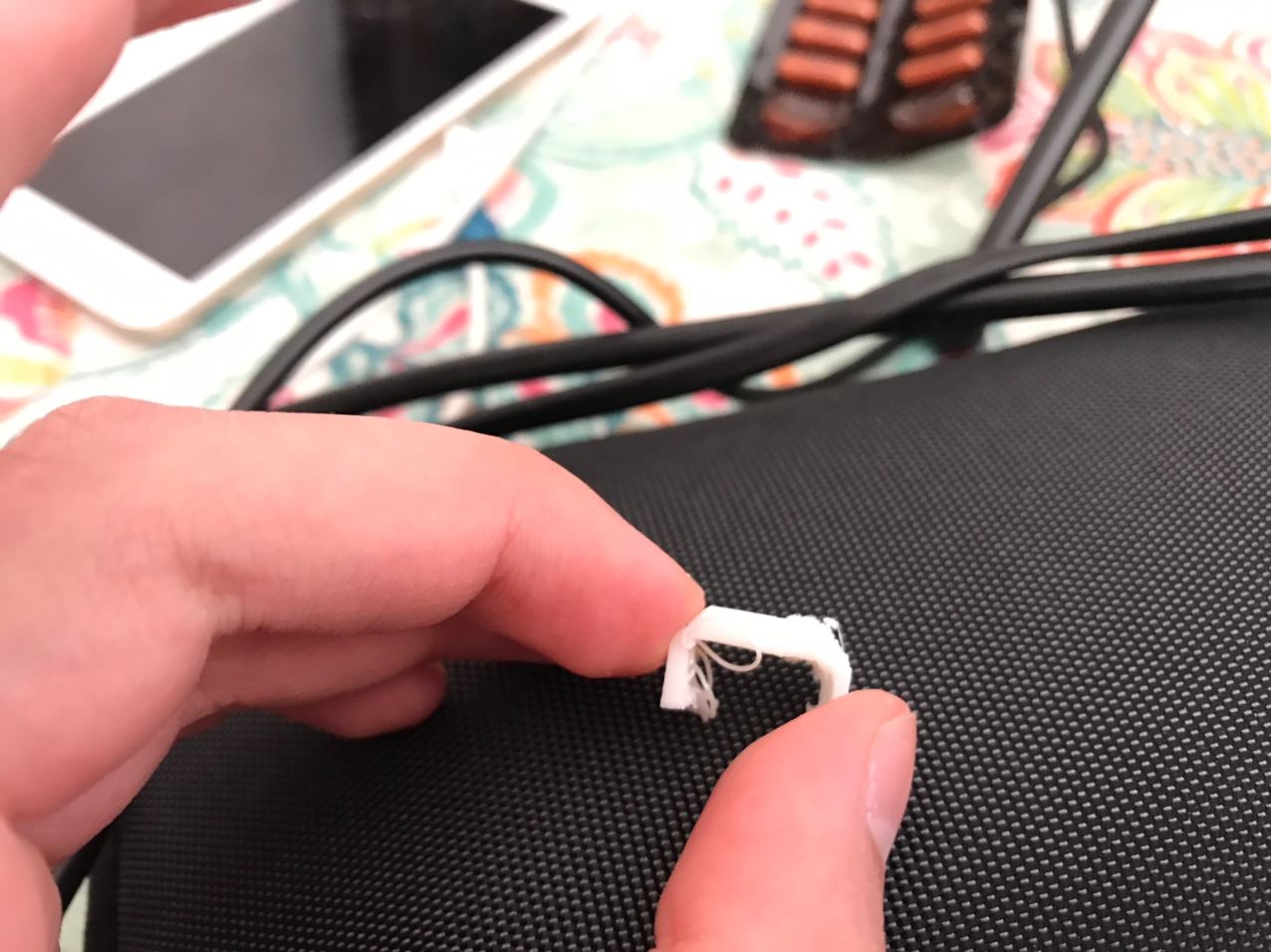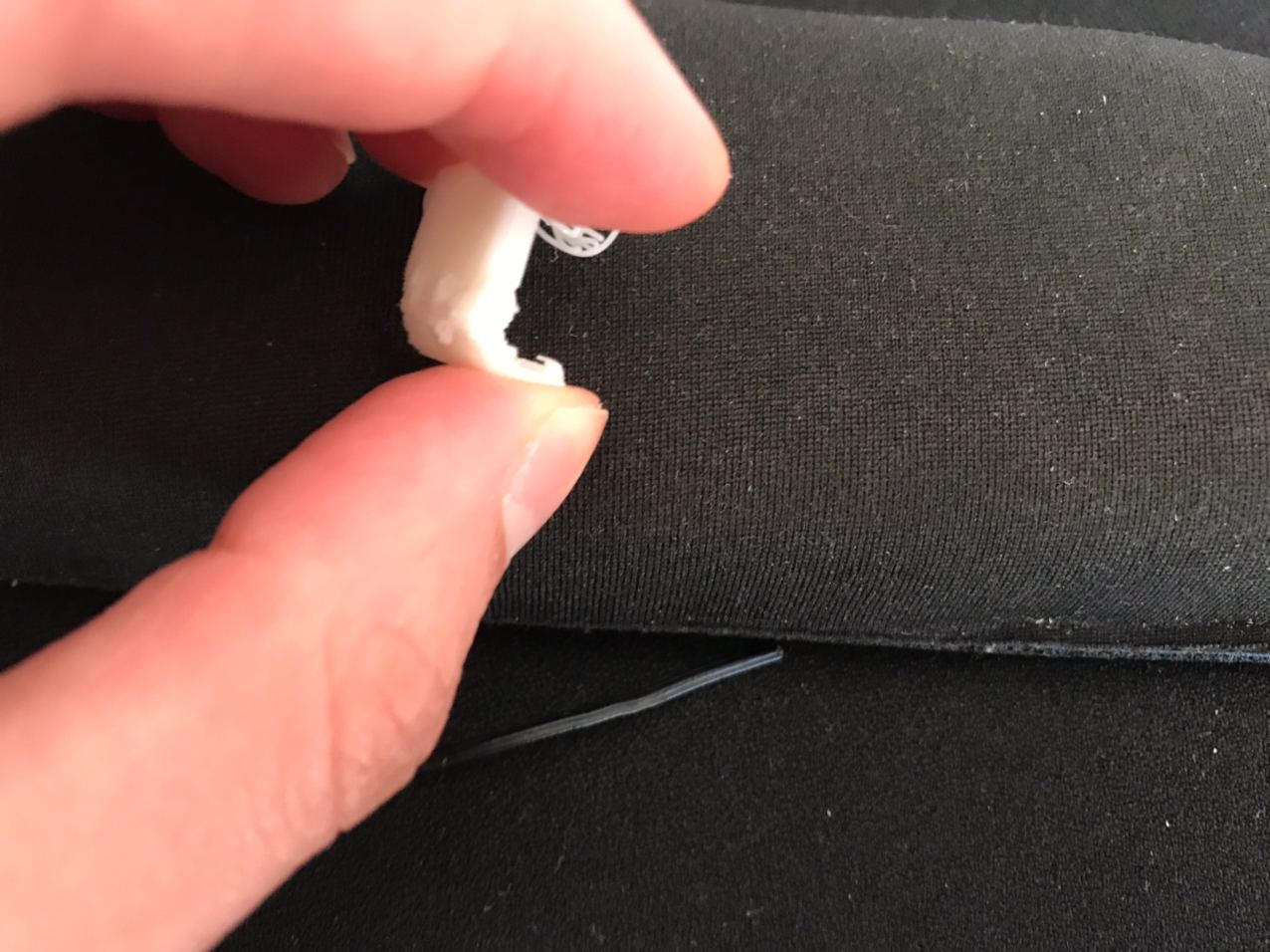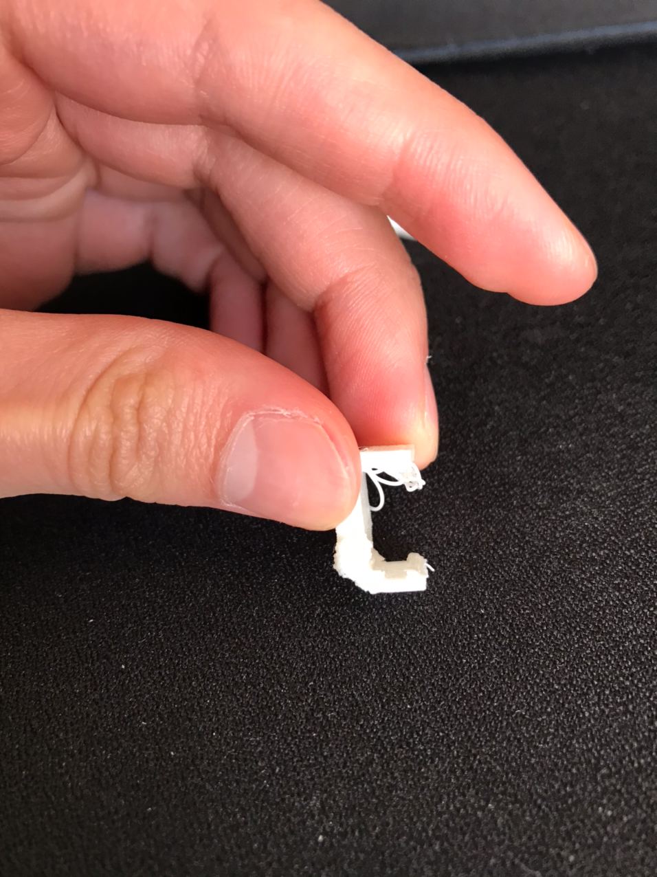 2. Con esa parte "apretada" (desconozco si tiene algún nombre específico) en uno de los dos lados. En ambas piezas quedo en la misma parte, un lado más acentuado que otro.
