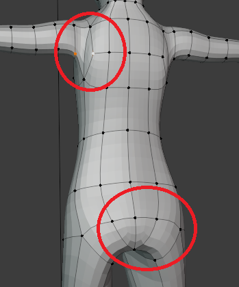 Estoy creando un personaje a partir de Skin y al aplicar los modificadores me ha quedado alguna zona con triángulos. Posiblemente no influya posteriormente porque al personaje lo voy a vestir, alguna vez he visto en algún tutorial com resolver este problema, pero ahora no lo encuentro