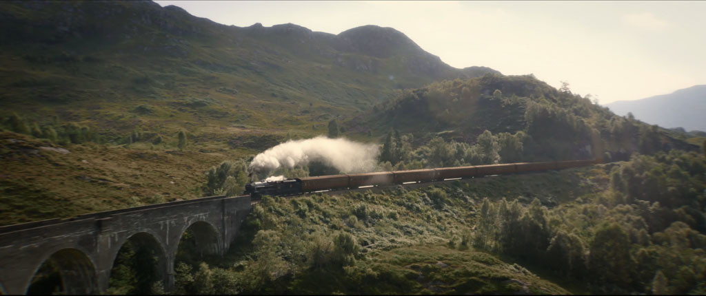 Tuvieron que encontrar o construir todos los elementos, árboles, hierba, montañas, etc. Otro elemento fue un puente construido en CG y añadido a la escena. Tuvieron que hacer coincidir toda la iluminación con los elementos prácticos de la escena, fundir los entornos juntos y proyectarlo en un geo áspero para dar más sensación 3D.