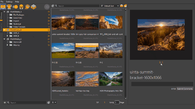 La biblioteca de contenido resultante se puede examinar visualmente o a través de una vista de árbol, o los usuarios pueden etiquetar y filtrar activos.