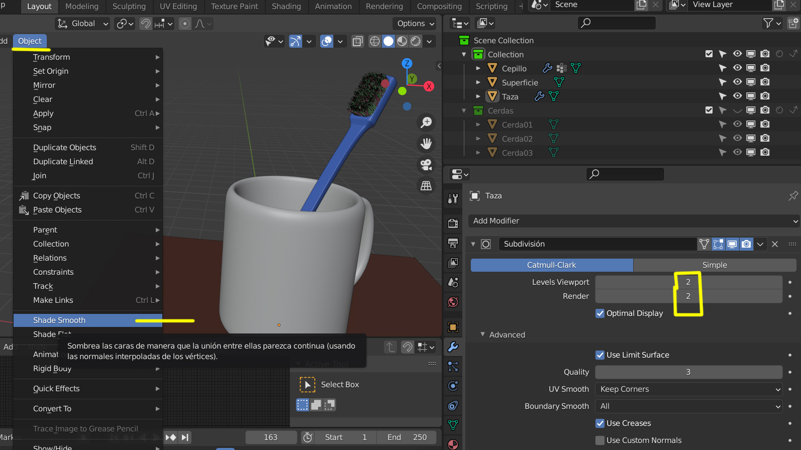 Por si hace falta, el .blend de la taza y el cepillo: https://drive.google.com/file/d/1sEo...ew?usp=sharing