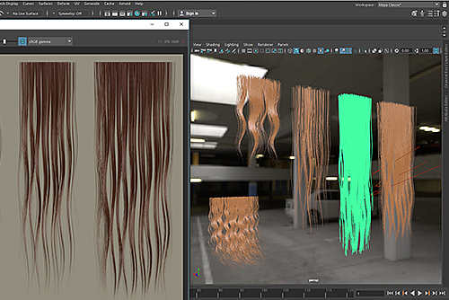 Los usuarios pueden generar matrices planas de hebras capilares, ajustando su forma a través de conjuntos de parámetros para ajustar la dispersión, flexión, rizo, ruido y aglomeración.