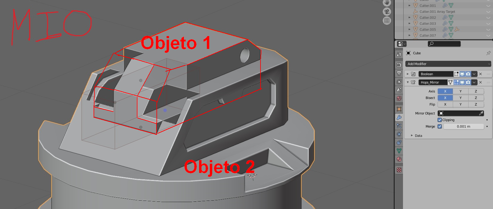 Buenas, miren estoy utilizando el BoxCutter para hacer una granada y cuando utilizo la herramienta de boolean hago el cubo y en vez de quedarme como en el video que estoy usando, pues al hacer el agujero me sale como si estuviera hueco o algo pero al del video lo hace y le sale bien, aquí las imágenes que pongo del video y mías.