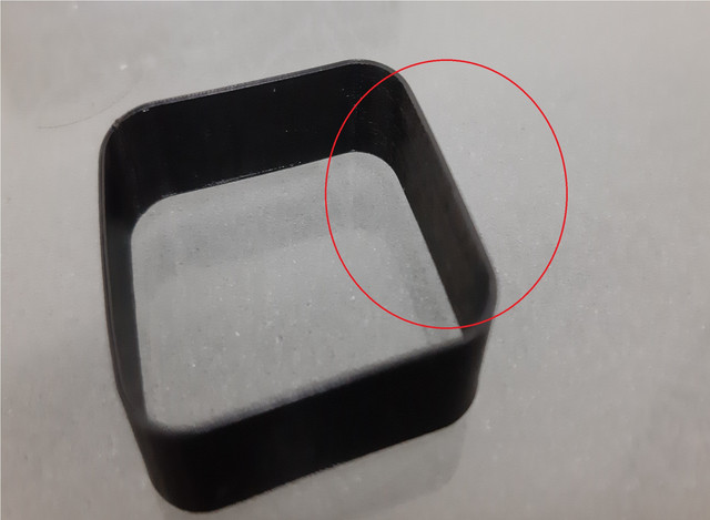 Ahora se me ocurrió calibrar la Ender 5 ,ya que ya estaba comenzando a imprimir un poquito fuera de las medidas que me gusta tenerla (a lo mucho con un 0.01 o 0.02 de tolerancia) la calibré y Oh sorpresa también comenzó a salirle el misma fallo de la Ender 3 pro, esa zona como rugosa, pero en esta impresora no en el lado derecho de la parte interior del cuadrado, sino en la parte trasera de la zona interior, les mando las fotografías para que vean.