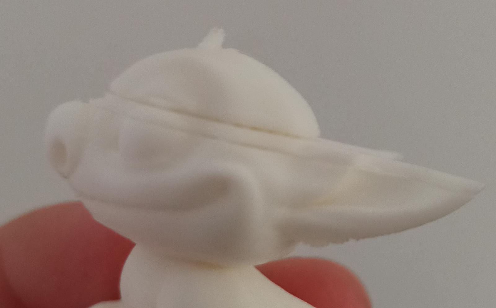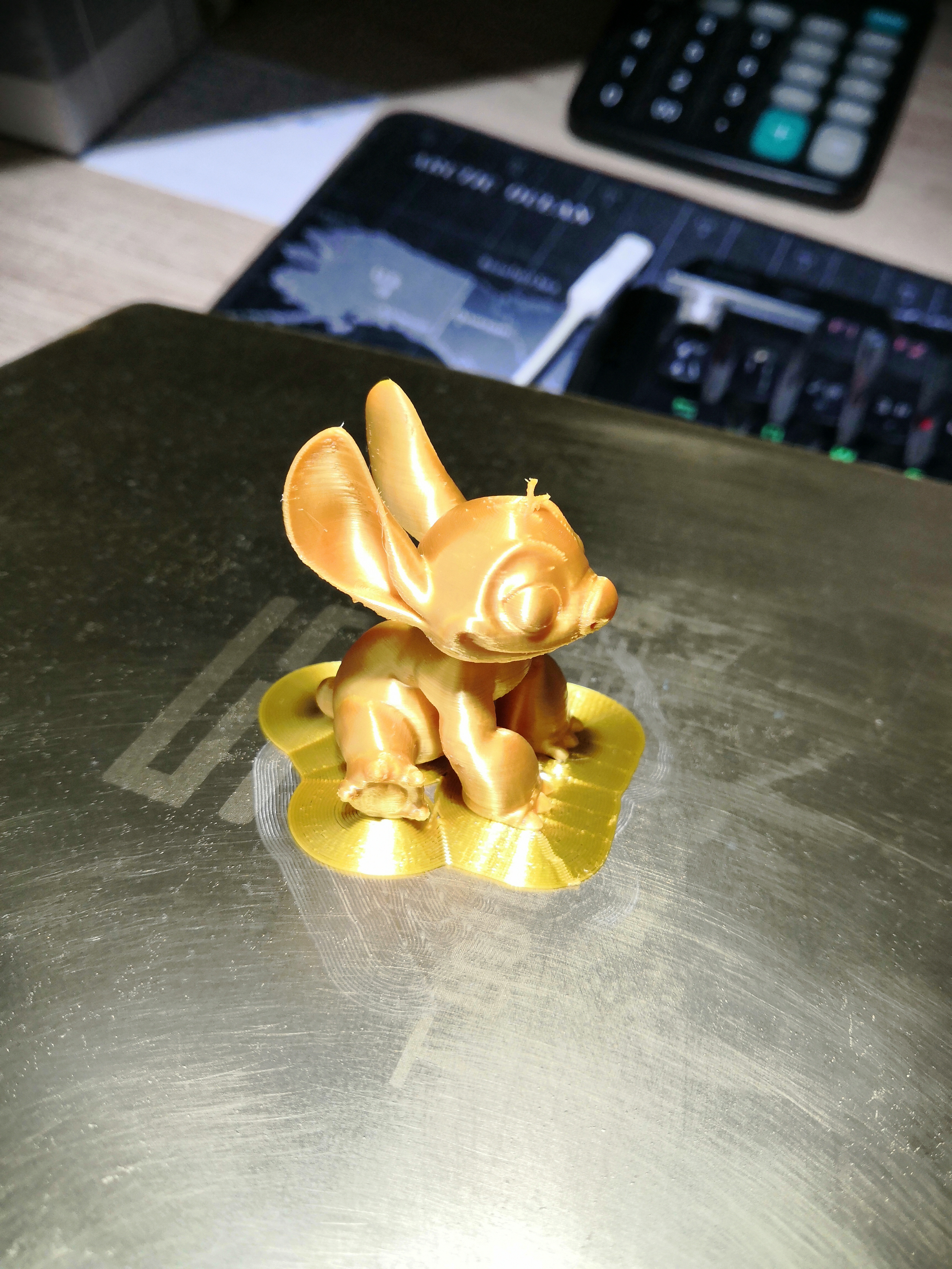 Hola. Después de dos días calibrando todo concienzudamente, imprimir varios modelos de prueba y demás, me pasaron un modelo de Stitch para terminar de ajustar la retracción, ésta está bien pero me salió un error en la cabeza y las orejas (que además se rompen).