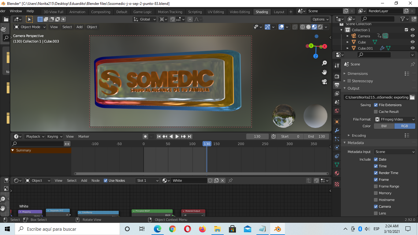 Al logo le di apariencia metálica y con colores degradados en la pestaña Shading (Blender está en idioma inglés).