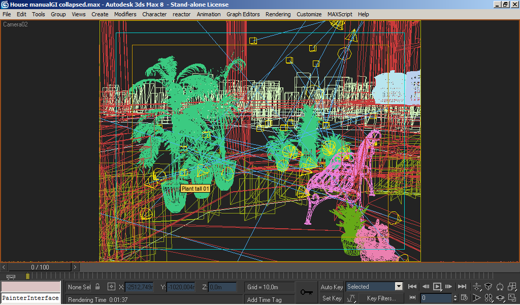 En esta escena, la intensidad de GI se sube y se baja desde el multiplicador de cualquiera de los spots, pues todos están instanciados.