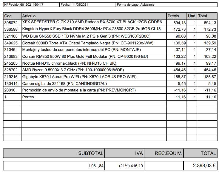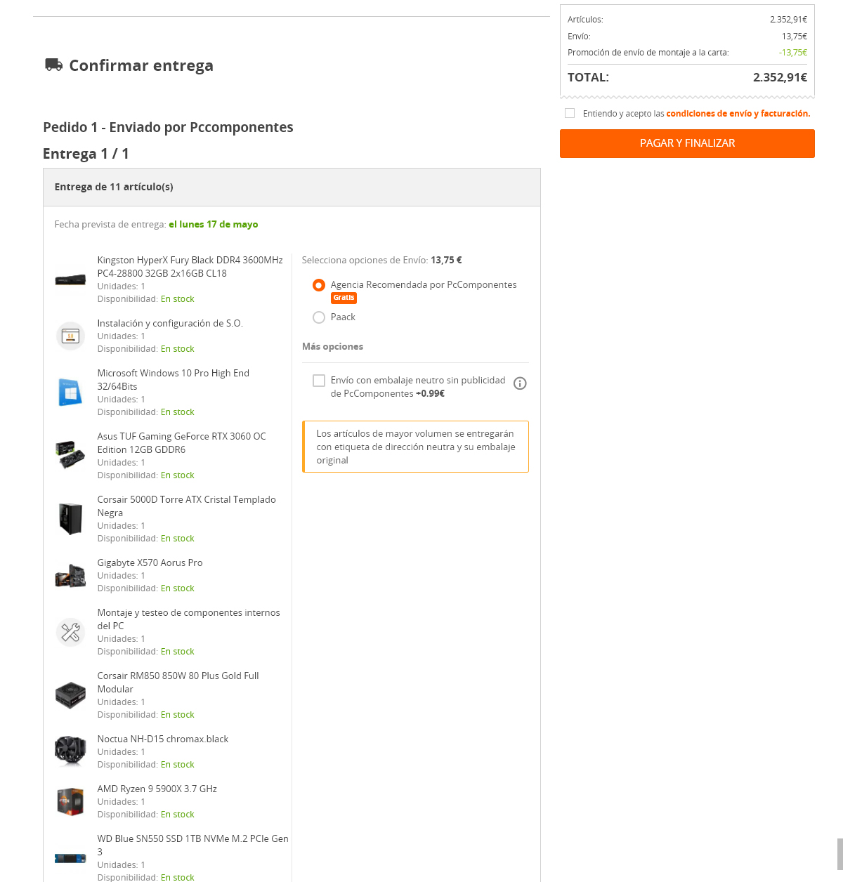 Por lo demás está muy bien, siempre que quieras hacer OC. Si no vas a hacerlo entonces rebaja la RAM a 3.200 MHz. :)