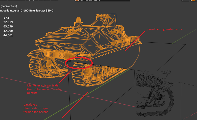 El plano de corte seria el que forma el guardabarros del tanque y el que se ve seleccionado en la miniatura.
