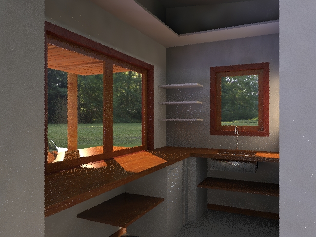 ¿Por qué se ilumina una parte de mi render en donde no debería haber luz? Adjunto imagen de referencia, el problema está en el bajomesa, justo al fondo del frigobar.
