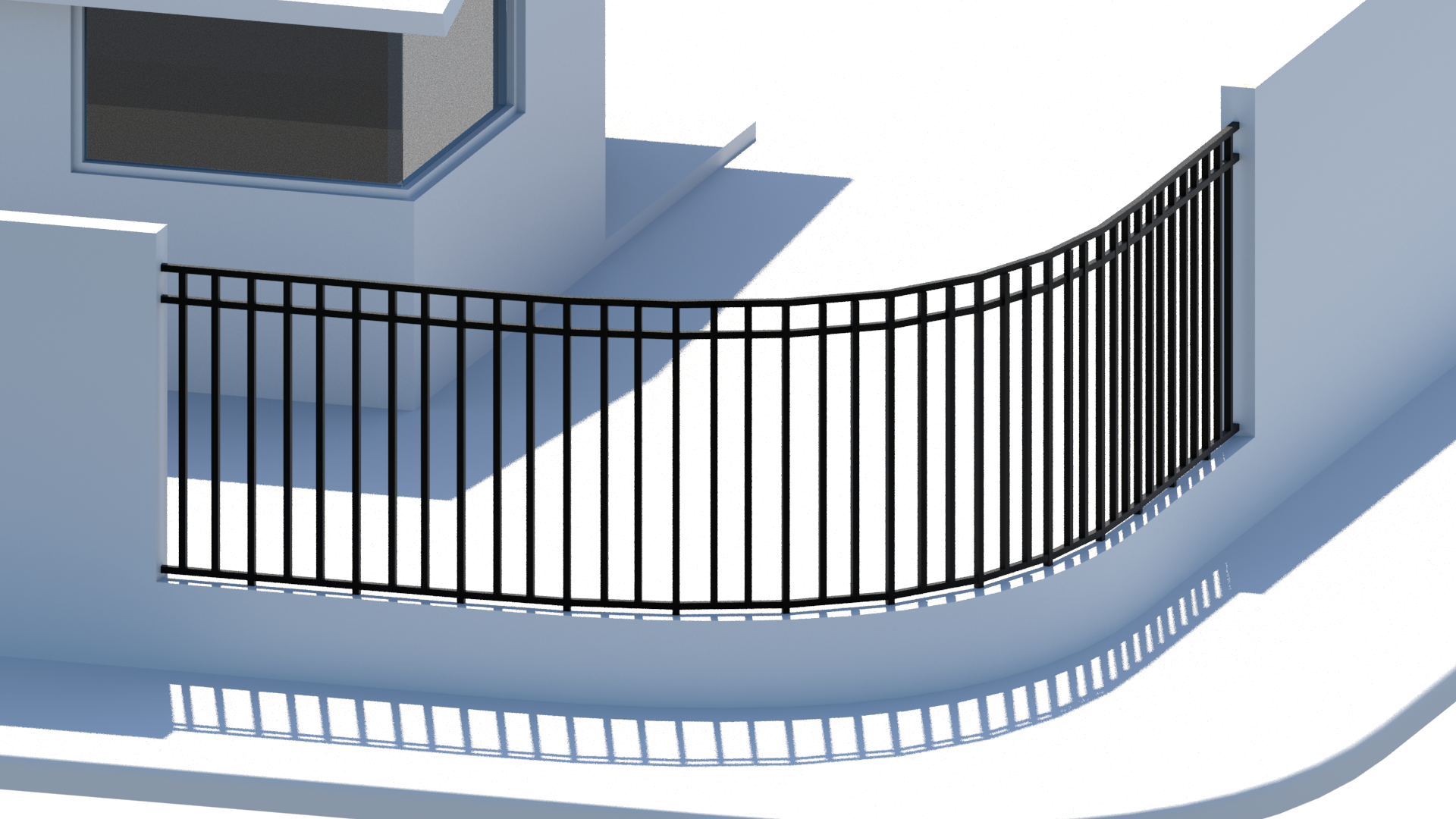 Estoy haciendo una casa en 3ds Max la cual lleva una reja/barandal en una de sus esquinas y con una curva, para hacerla dibujé una línea (line). Y después hice el barandal con Railing siguiendo la línea.