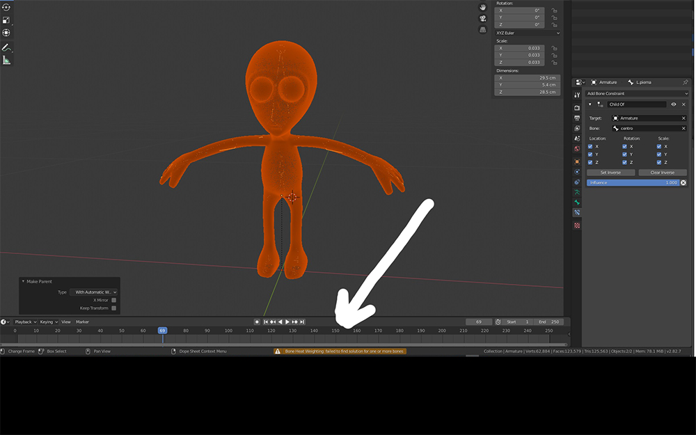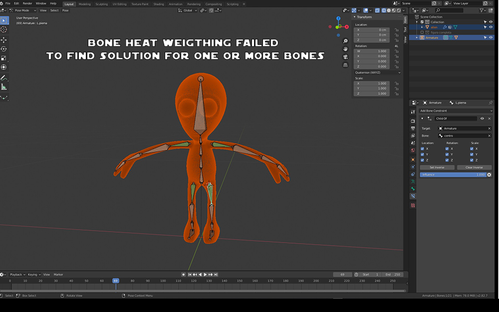 Al intentar unir la malla con la armadura me da el error bone heat weigthing failed to find solution for one or more bones.