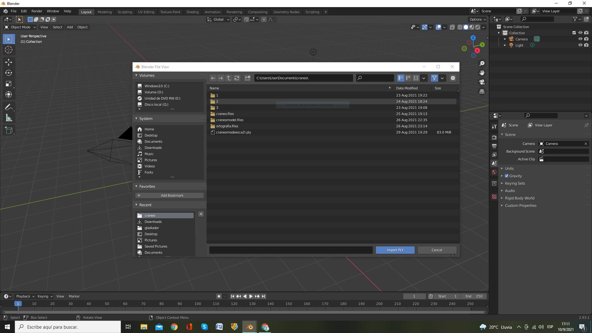 Cuando voy al Blender, importar, y abro el archivo, no se ve el modelo, a veces hace como si cargara pero al terminar no se agrega nada al mundo, pero si a scene collection, en la cual si aparece el modelo importado.