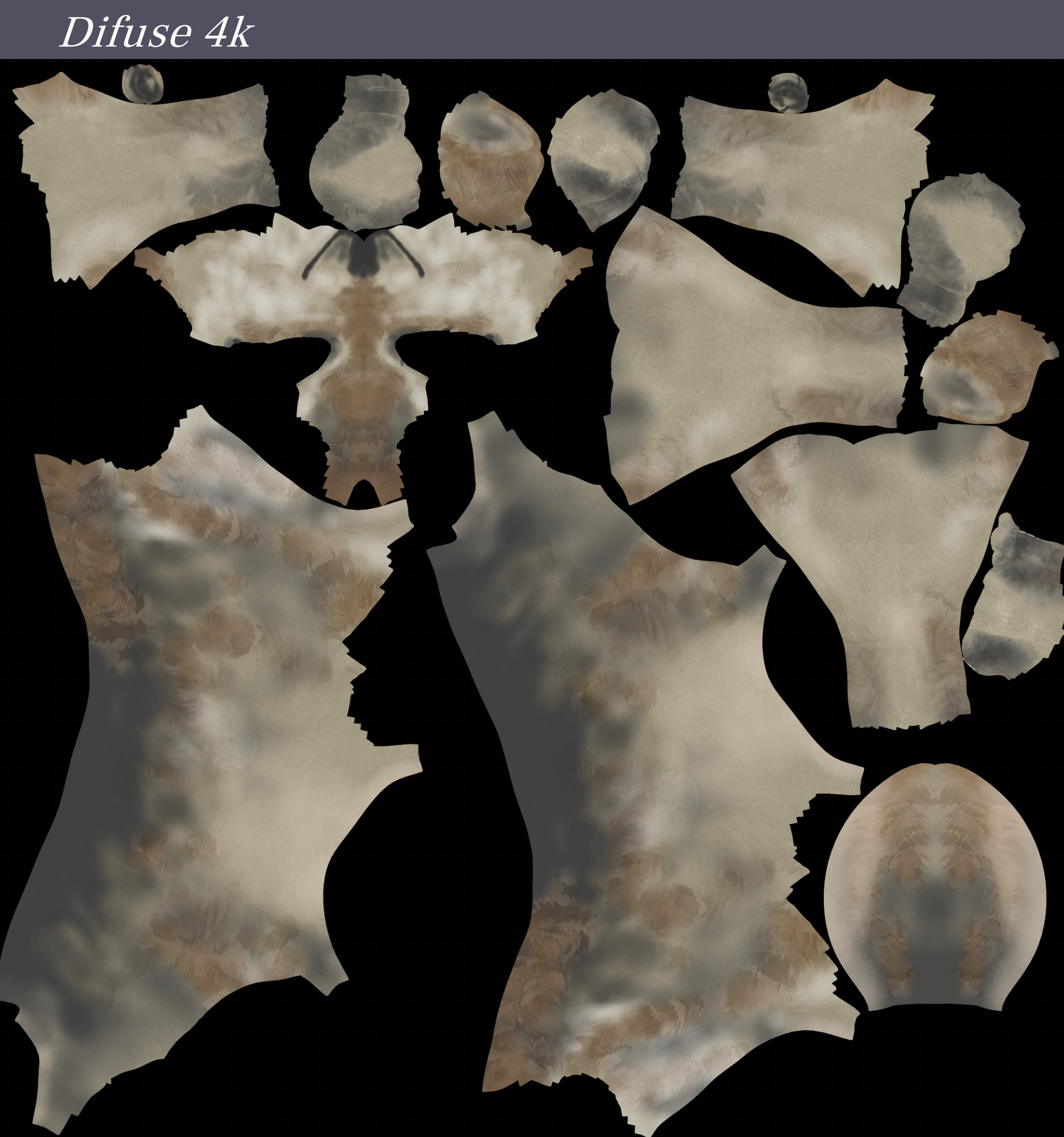 El modelado fue realizado con ZBrush partiendo con ZSpheres hasta llegar a una maya Dynamesh, retopología con Zrmesh automática para proyectar detalles y pintura con Polypaint, render con Cycles y composición final con el potente e infravalorado Gimp.