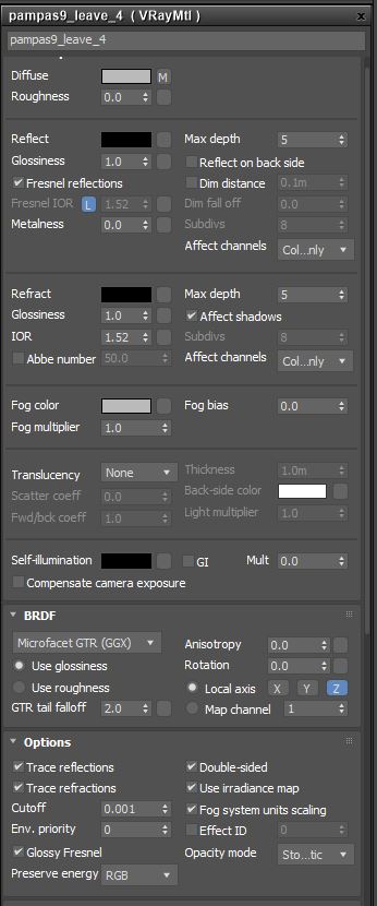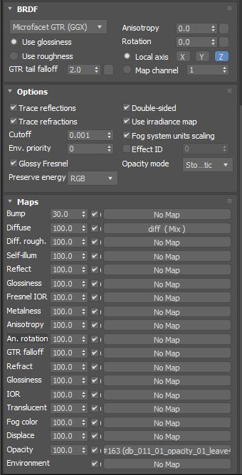 Hola, tengo un problema con este modelo, no se cual es el error, cuando quito el mapa de opacidad se ve normal, pero se ven los poligonos, si pongo otro mapa diferente de opacidad, con más area en color blanco, comienza a verse el material, no se que problema es.