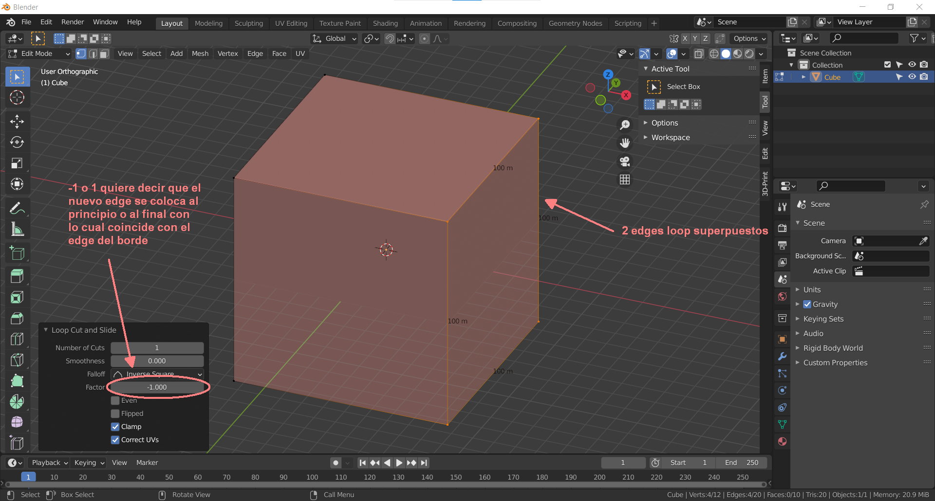 Buenos días. Tengo un problema intentando hacer un Loop sobre un cubo que mide 100 milímetros en X, con medidas exactas.