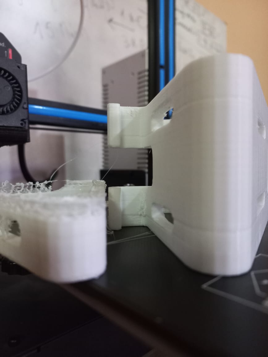 El blanco es el ultimo y es el caso más común, donde se extruye poco y después ya queda cualquier cosa con las capas. En el caso del soporte negro, fue antes de ayer, lo deje imprimiendo y cuando me desperté al otro día estaba así, con un par de capas al medio faltantes.