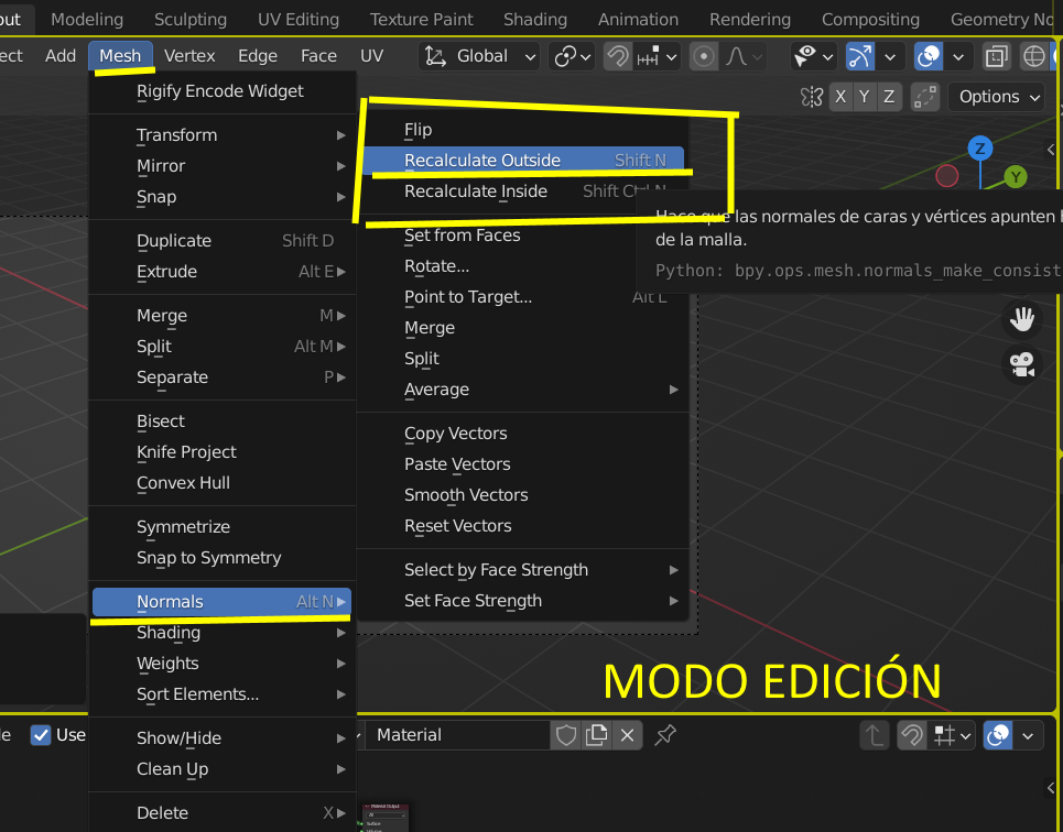 Problema de vértices duplicados. (Aquí vi en una respuesta del foro en que se dice que hay que seleccionar todos los vértices del objeto en modo edición y presiona letra M > By Distance y aparece una ventana que dice Merge Distance 0,0001 y no se que cantidad poner ni donde están esos vértices).
