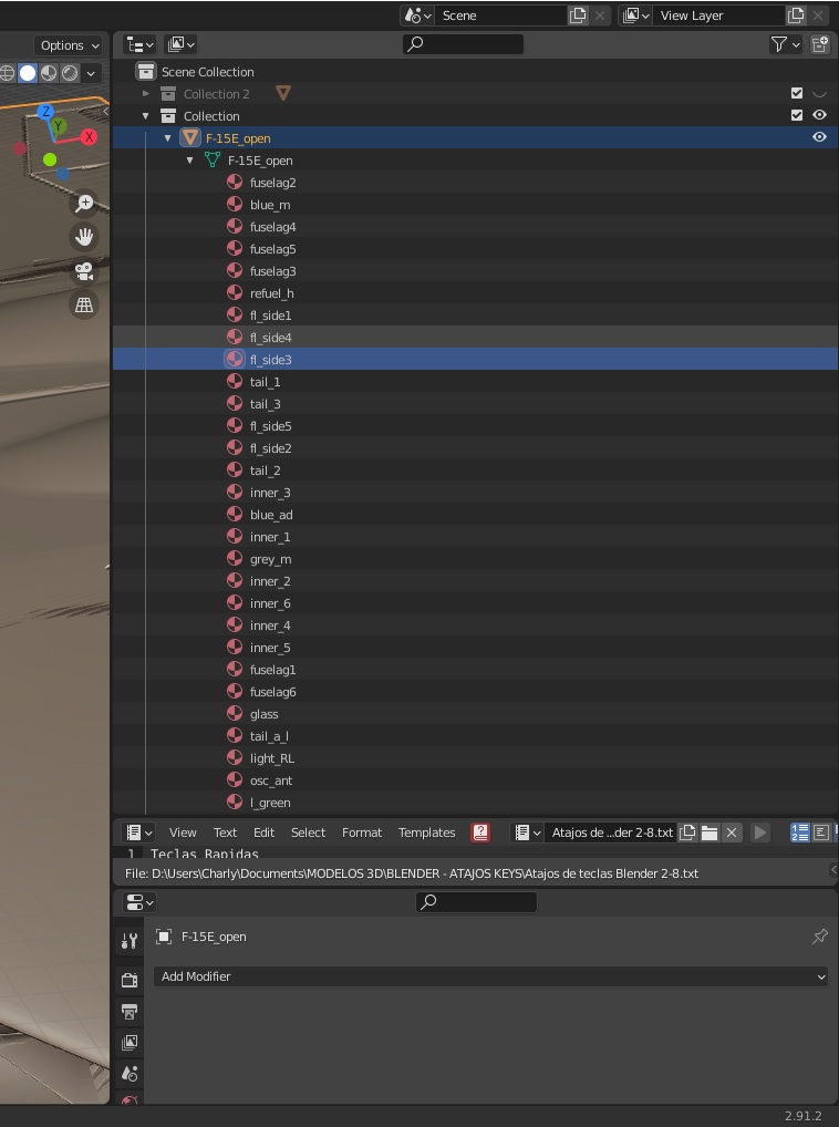 He importado un archivo en OBJ y este está organizado todas las partes que componen dentro de una Colección y dentro de este están cada uno de los objetos que conforman al modelo.