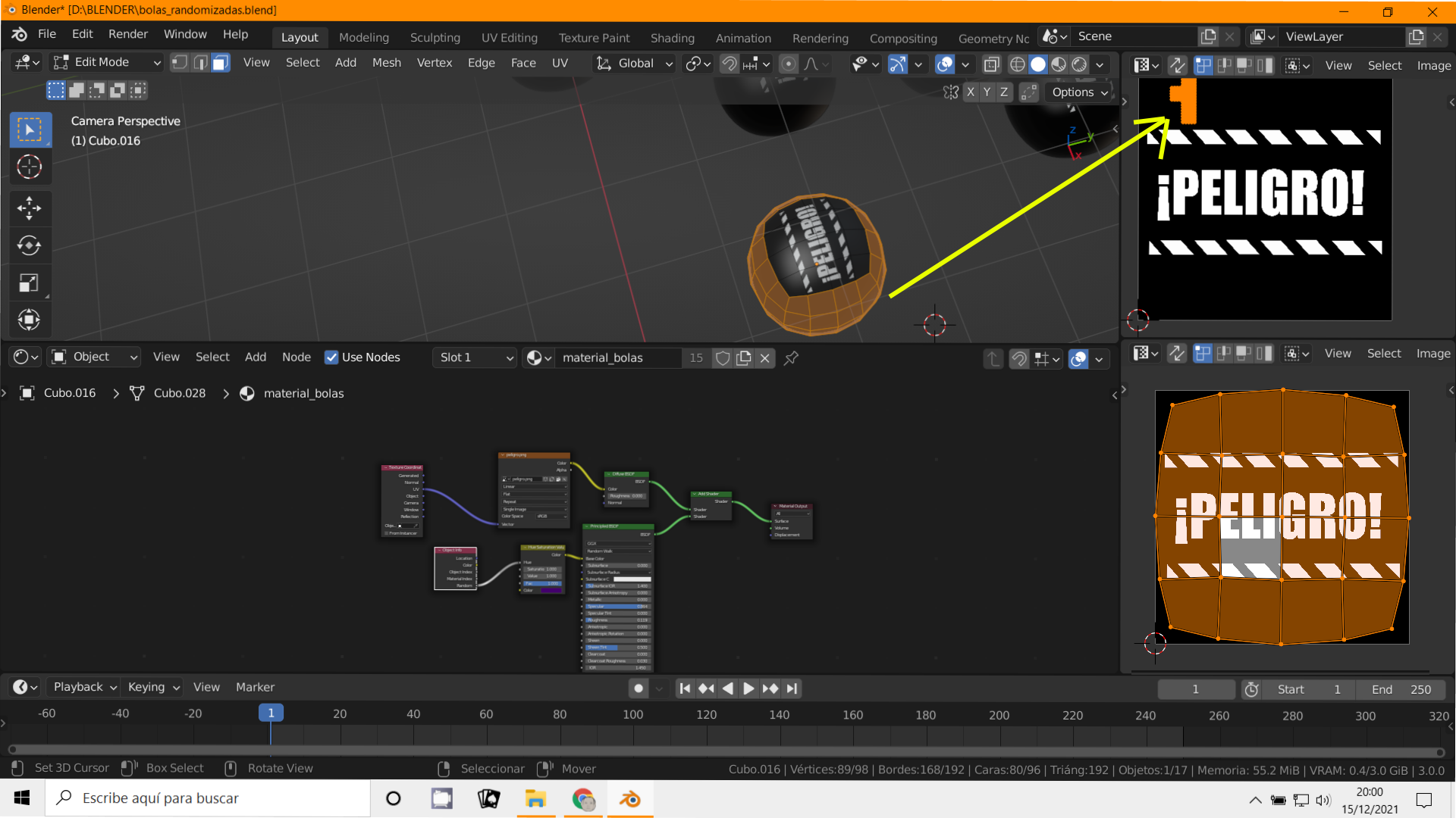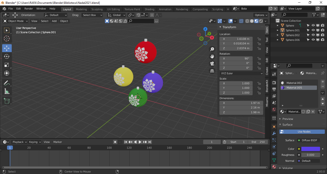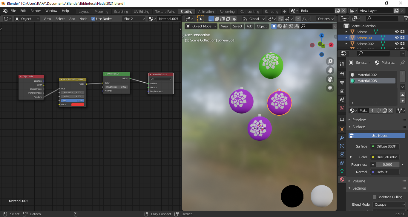 Estoy haciendo una serie de bolas de Navidad, es lo que toca. Cada bola tiene dos materiales, el color global de la bola y otro para una especie de dibujo. Adjunto una imagen.