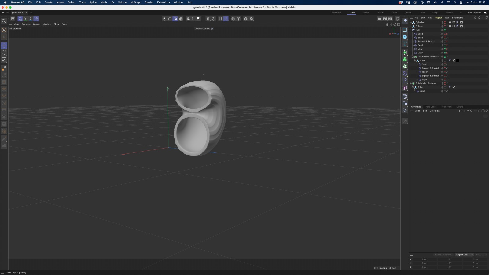 Hola, estoy intentando modelar el típico galet navideño, adjunto fotografía de referencia. De momento, partiendo de un tubo, y usando un subdivisión Surface y varios deformadores he llegado a este punto.