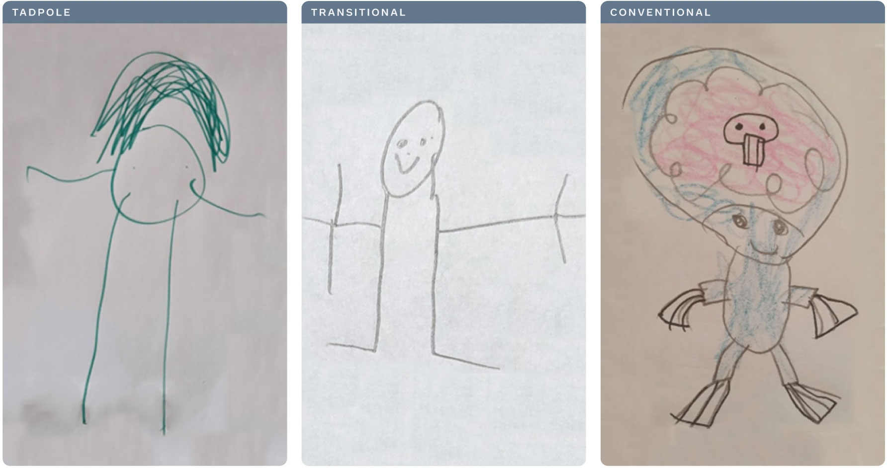Los niños dibujan figuras con una gran variedad de formas corporales, mucho más allá de la forma humana convencional; con cabeza, brazos, piernas y torso. Muchos niños empiezan representando a los humanos como lo que a menudo se llama "personas renacuajas", sin torso, con brazos y piernas unidos directamente a la cabeza. Algunos niños progresan a figuras "de transición", que tienen piernas que se extienden desde la cabeza y brazos que se extienden desde la parte superior de las piernas. Necesitábamos un método de rigging que pudiera manejar este tipo de variación morfológica.