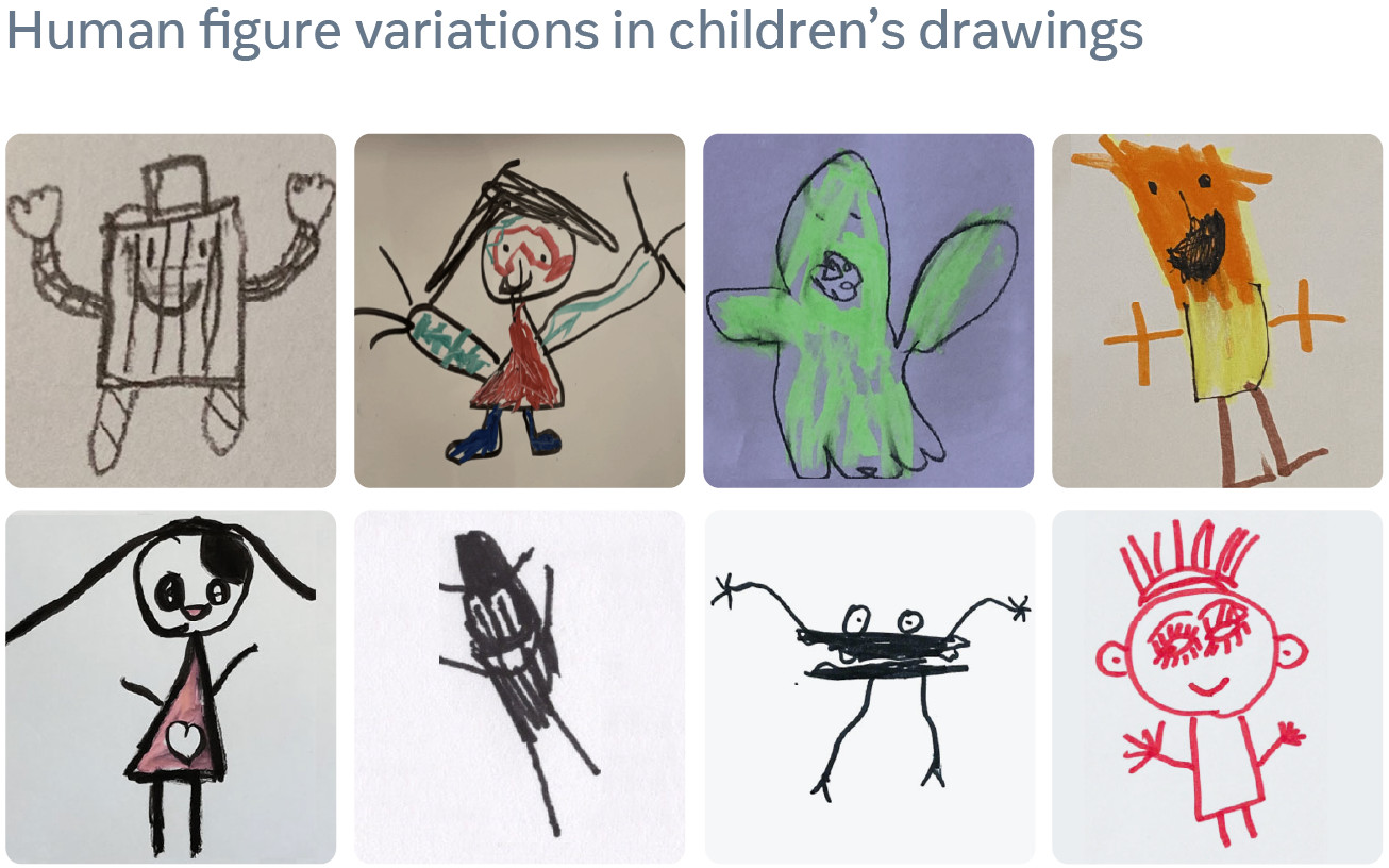 Los dibujos de los niños a menudo se construyen de manera abstracta y fantasiosa, por lo que si los pies de una figura se colocan precariamente o si ambos brazos están en el mismo lado de su cuerpo, confunde incluso a los sistemas de IA de última generación que sobresalen en la detección de objetos en imágenes y dibujos fotorrealistas.
