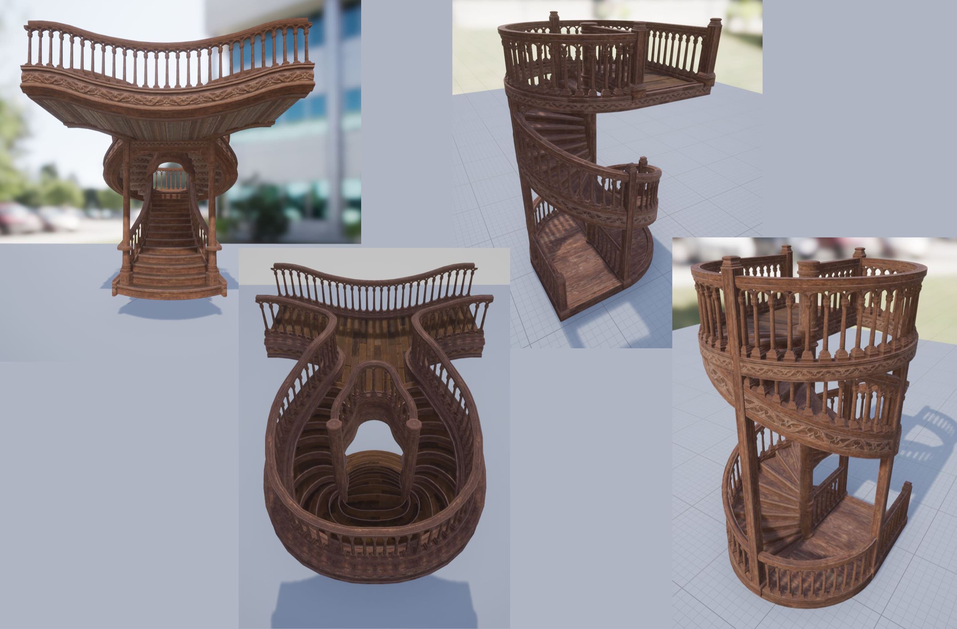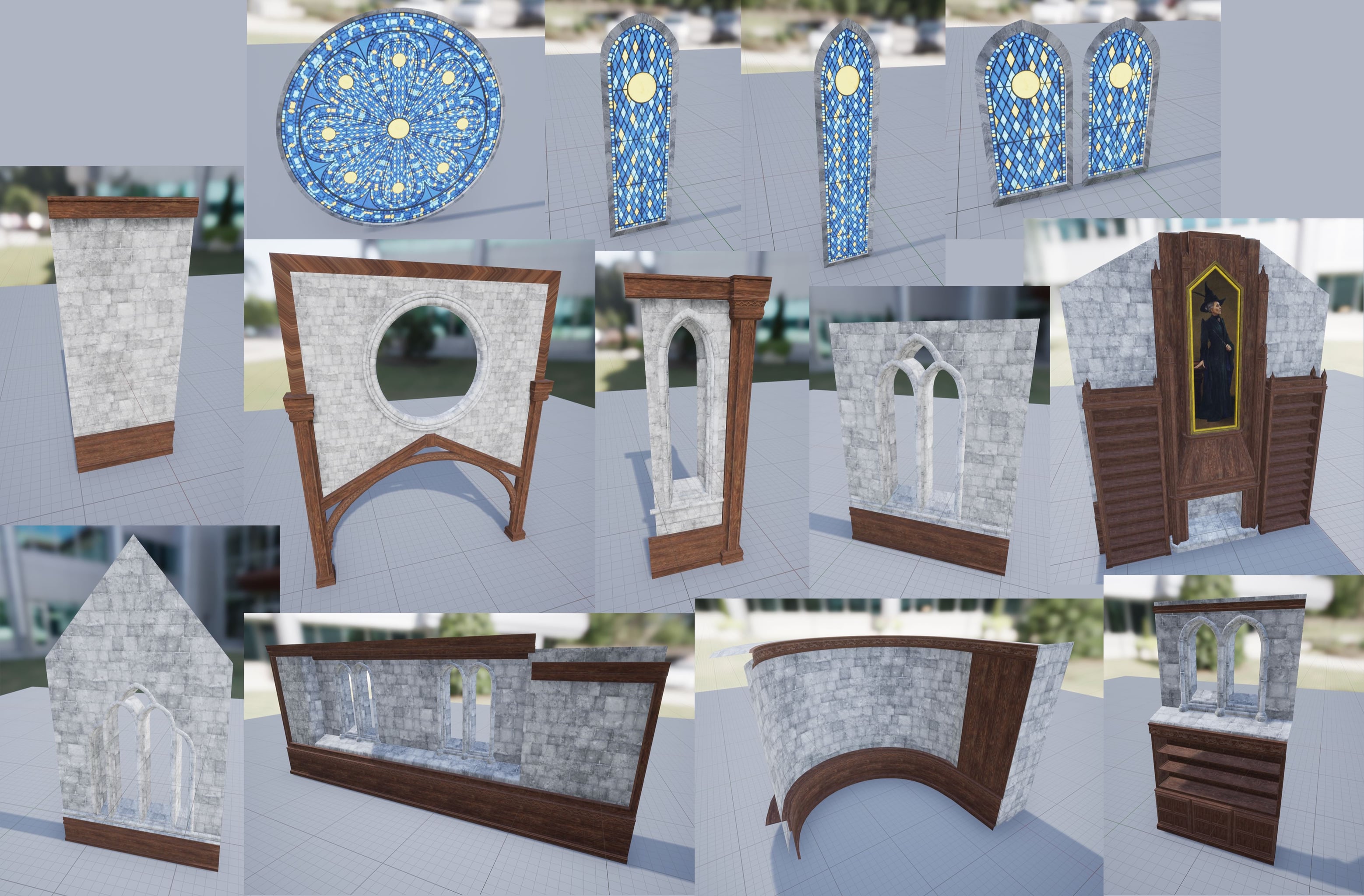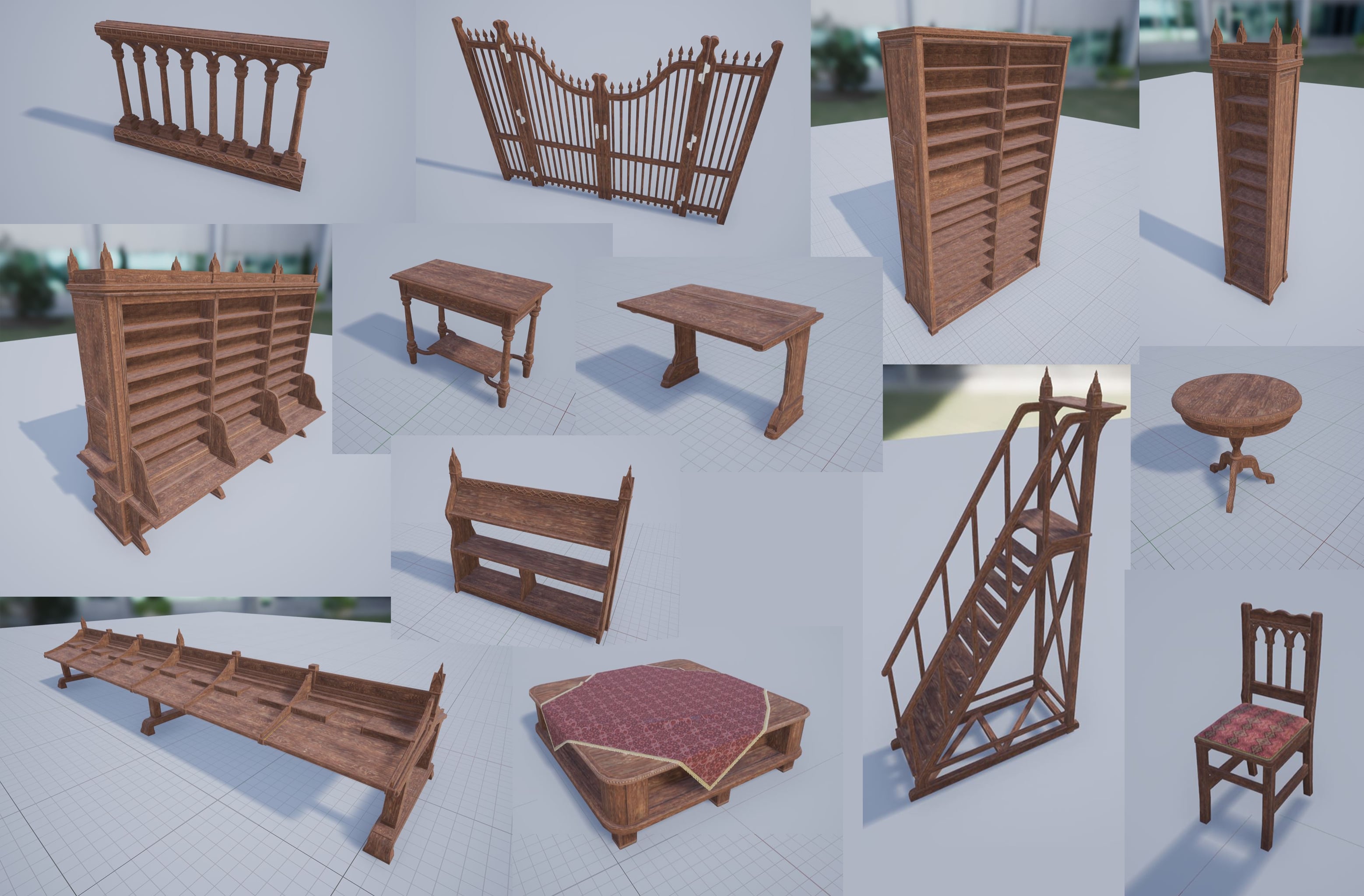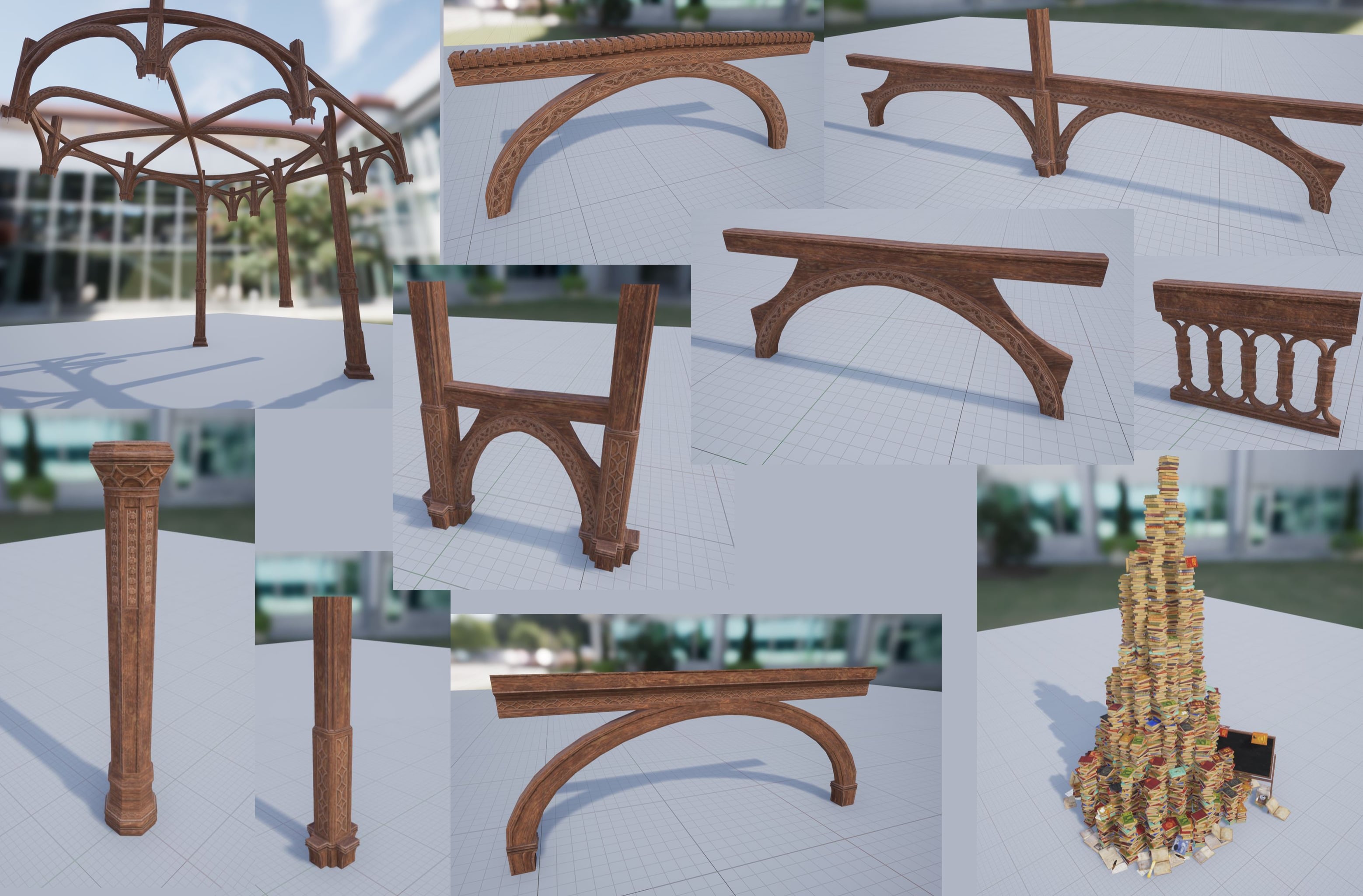 Todos los muebles y las piezas arquitectónicas fueron realizadas con Average Normal. Por lo que todos los elementos y detalles que puedes ver provienen de un solo recortador de madera que, como todos los textos de mi escena, también medía tres metros por tres metros por lo que pude combinar los UV y el kit sin dificultades.