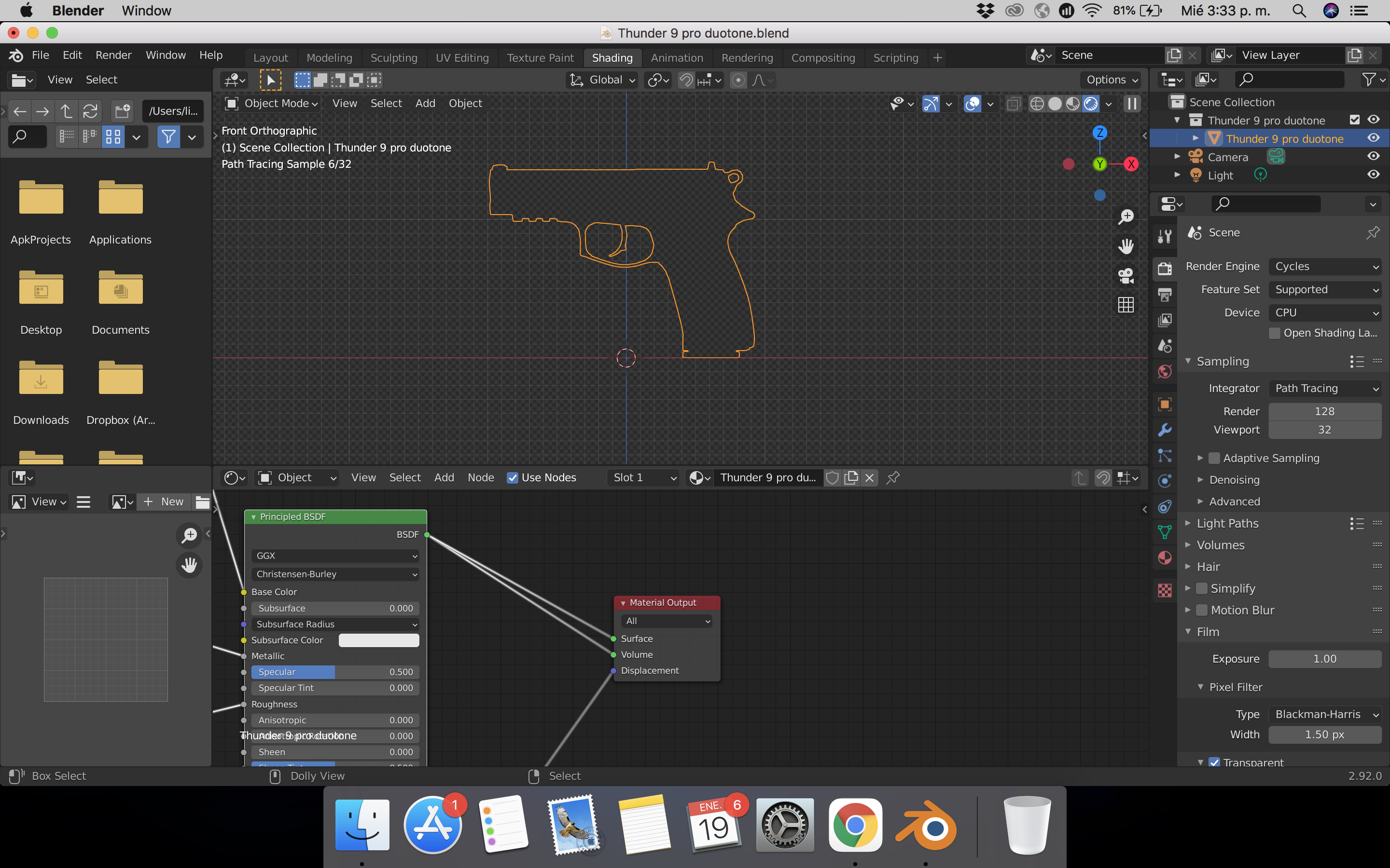 Estaba organizando un objeto para renderizar, siempre lo hago en Cycles, y me encuentro con que este no renderiza en Cycles, pero si lo hace en Eevee.