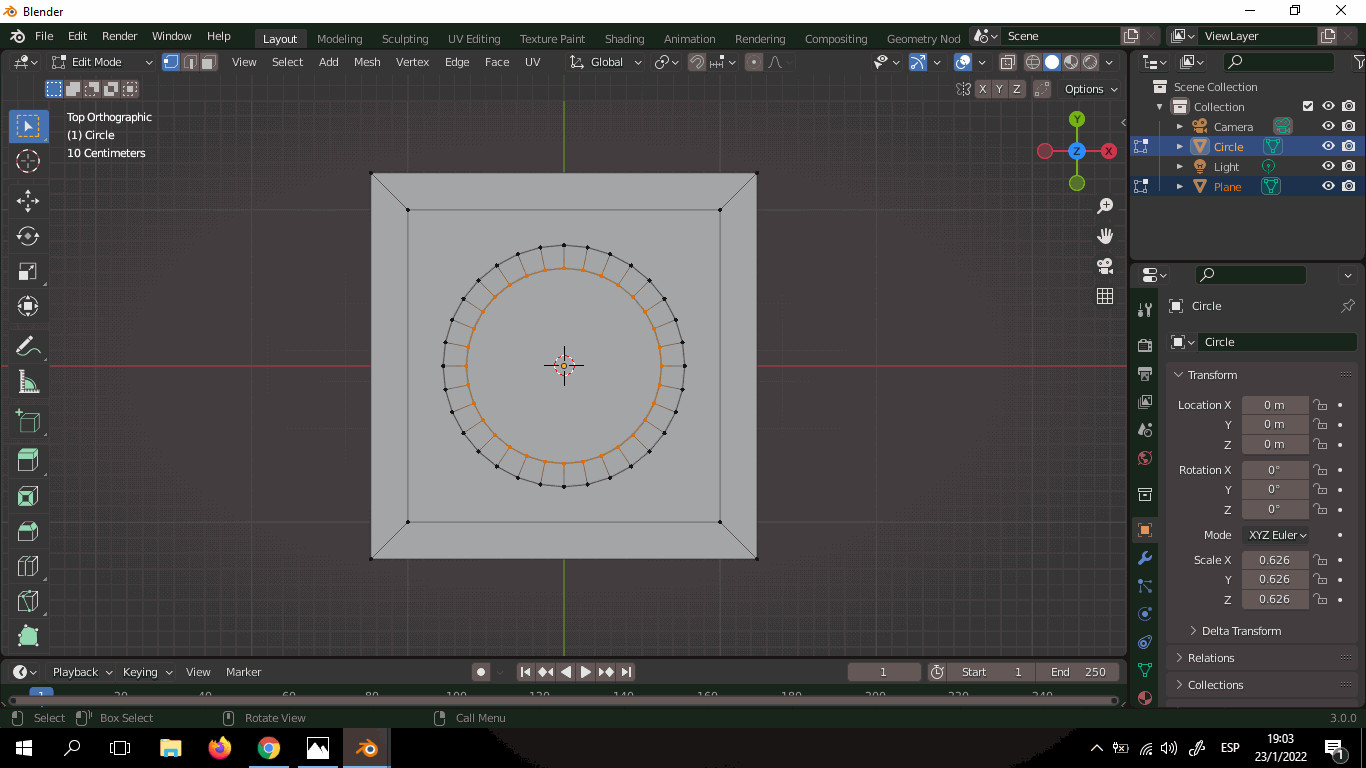 [SOLUCIONADO] Cortar la circunferencia sobre el plano en Blender 3