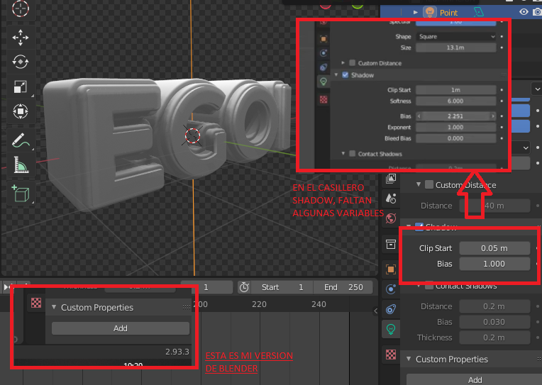 Una duda a cerca de la versión de Blender que tengo, ya que he visto algún tutorial en la sección sombras con mas variables que en la que dispongo en mi ordenador.