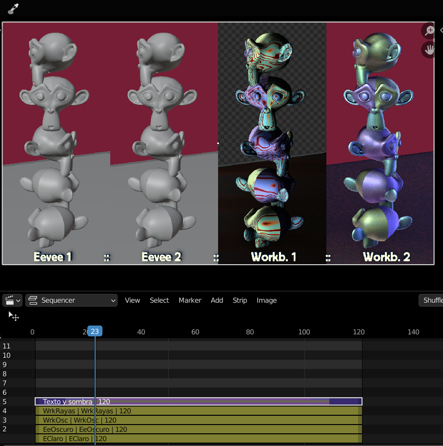 Tengo una escena con varios objetos animados y diferentes materiales.