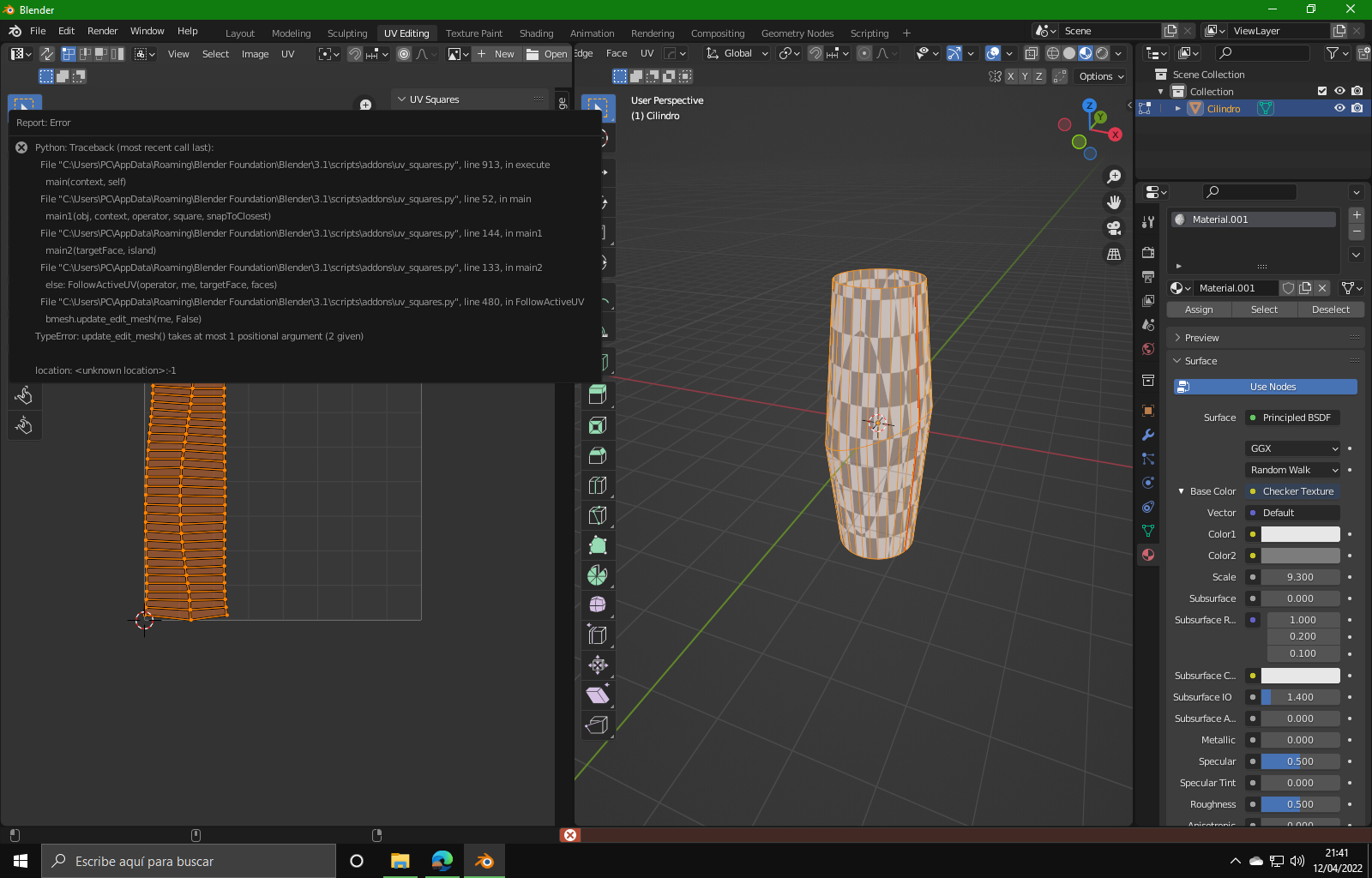 Cuan utilizo la herramienta UV Square en blender 3.1 me da el siguiente error, cosa que no ocurre en la versión 2.93