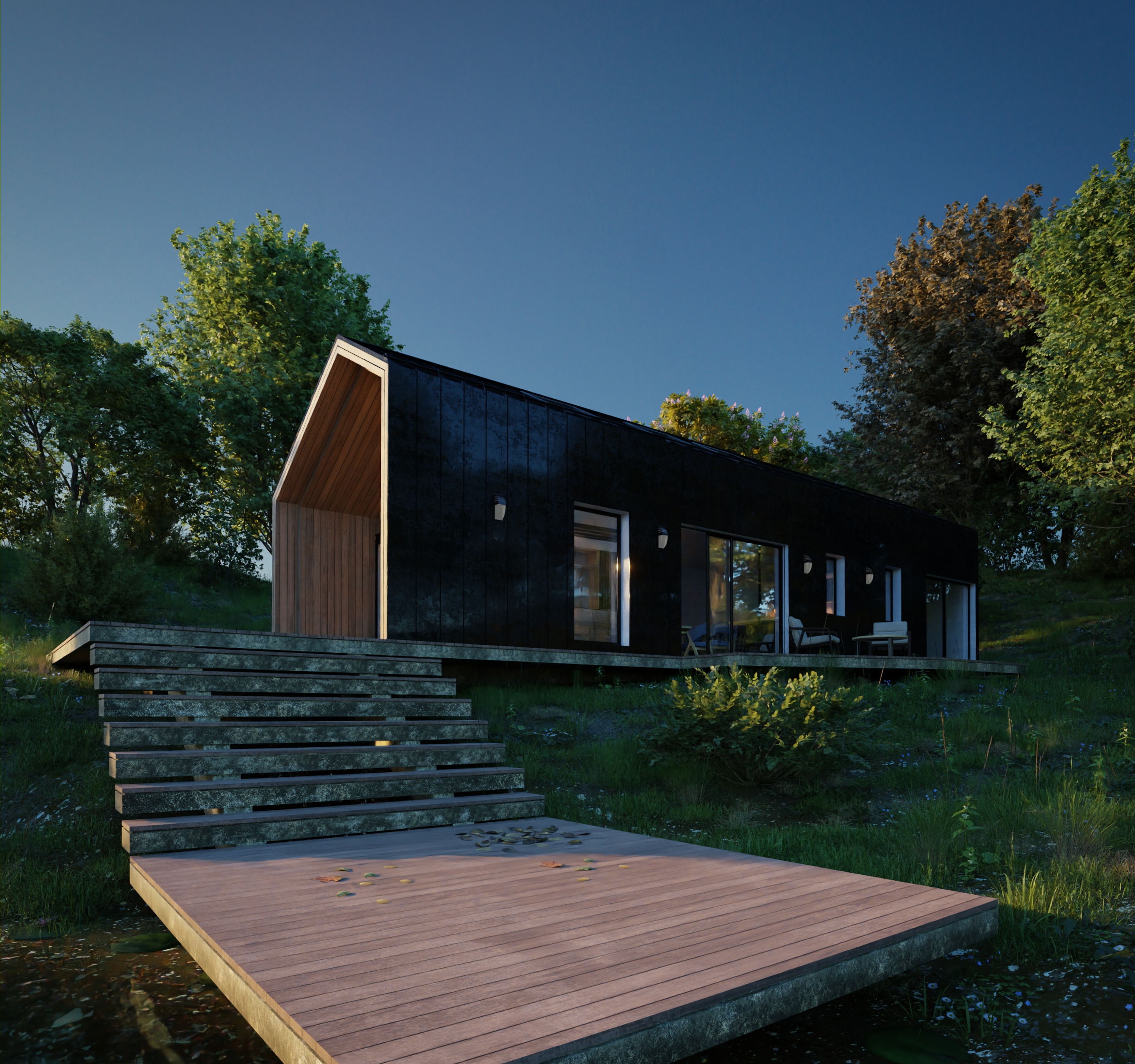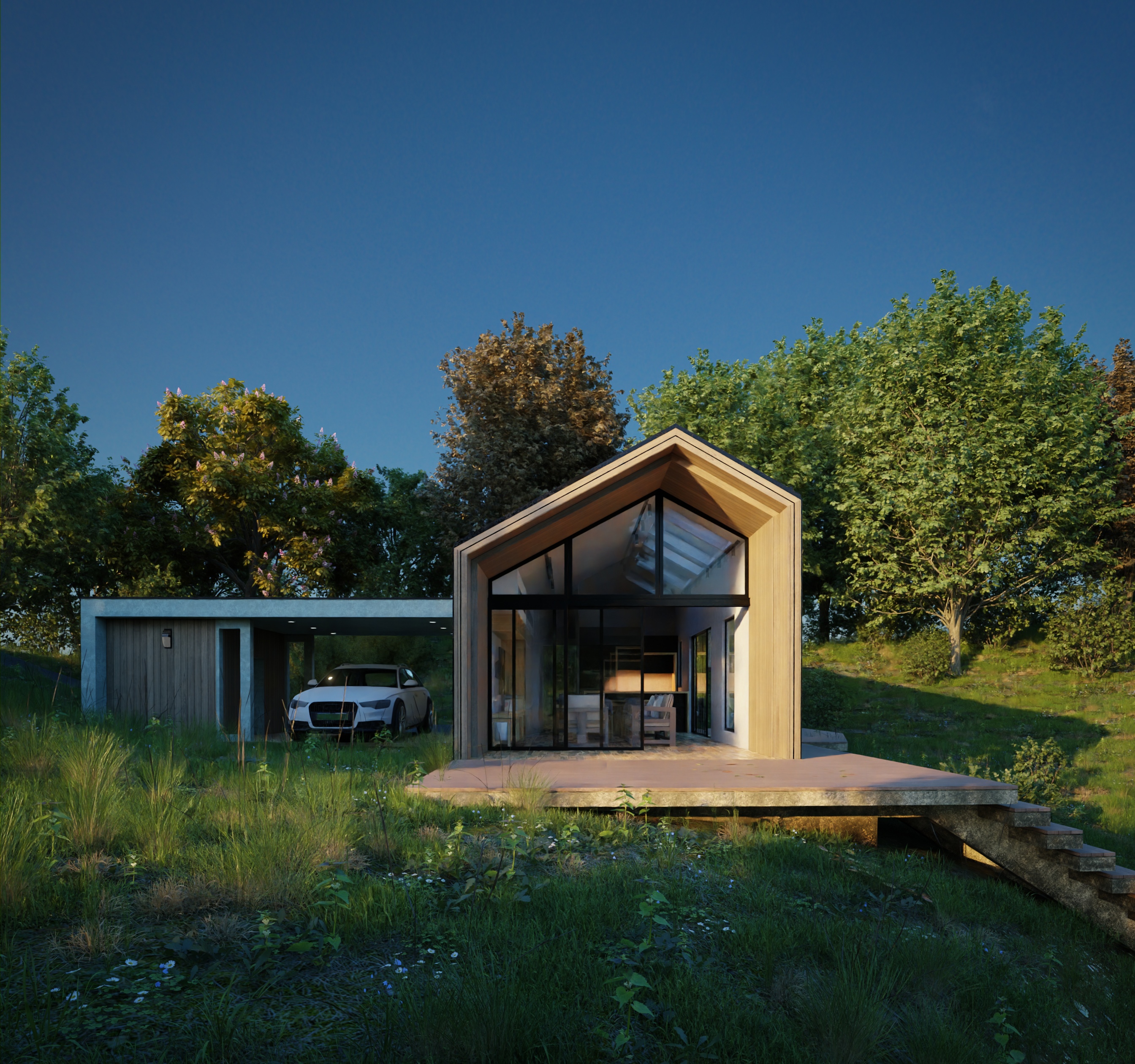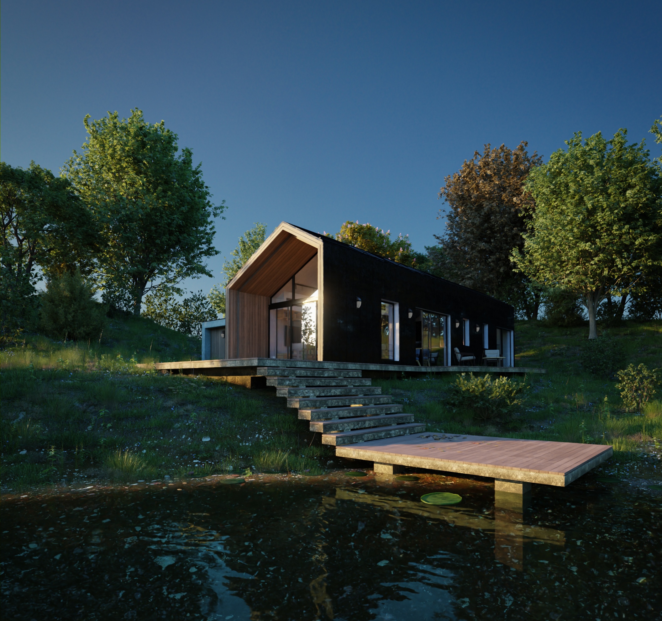 Hola Familia como va todo. Este es el resultado de un Reto personal de hace ya un tiempo, quería crear el ambiente de una casa moderna en un entorno cargado de pura naturaleza. Y este fue el resultado.