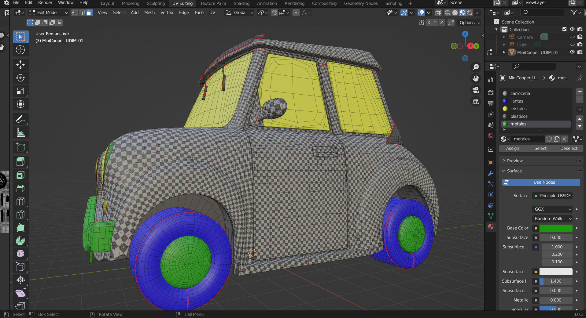Cuando trato de poner el filter en mi modelo, se ve mal y no cuadra con las partes de carrocería del carro, hice UV Editing en Blender y luego importé el modelo a Substance 3D Painter, pero cuando le pongo un filtro, se me ve mal, sobre todo en la parte de la puerta del carro, como lo puedo solucionar?