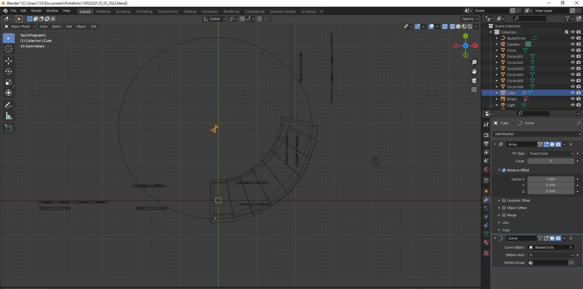 Como hacer que el array forme una curva con el objeto. Al hacerlo no me funciona.