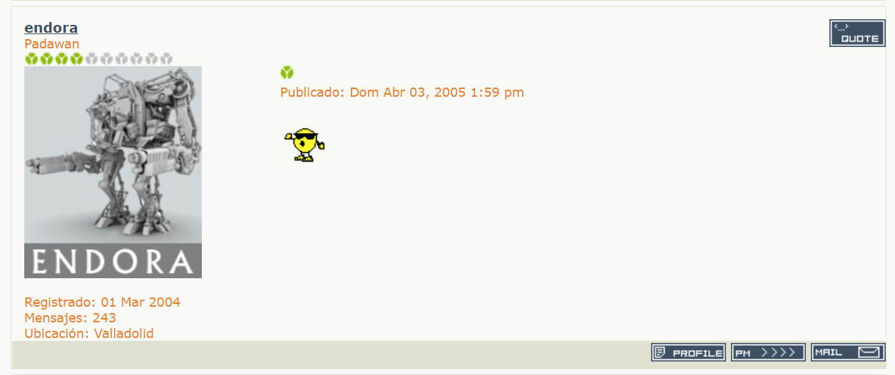 Sabrá dios los años que no entro aquí, estoy mirando por hardware, recordé este sitio, y es lindo mirar para atrás y ver las diferencias que hicieron los 20 años transcurridos. Enhorabuena por tu trabajo Endora.