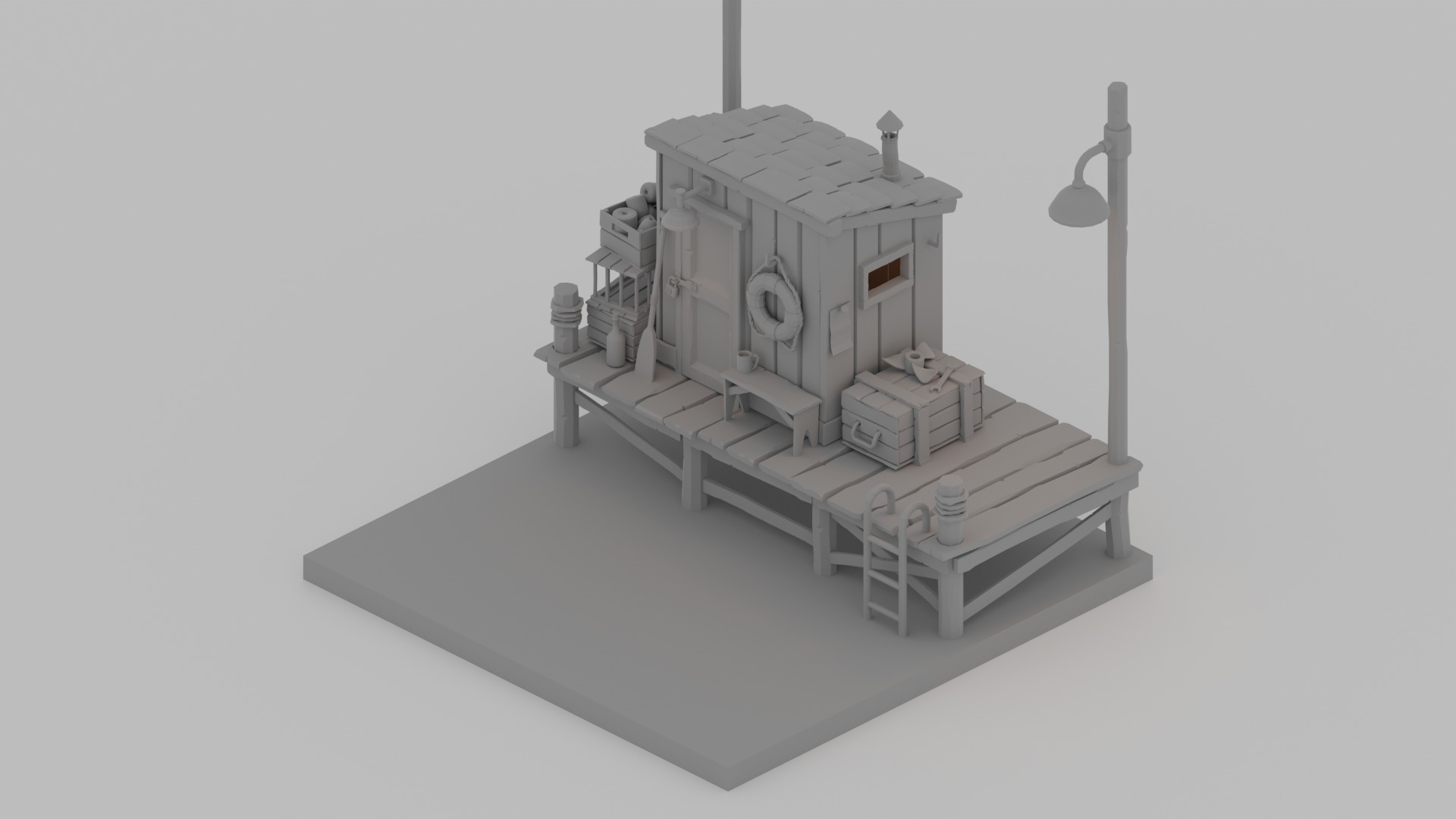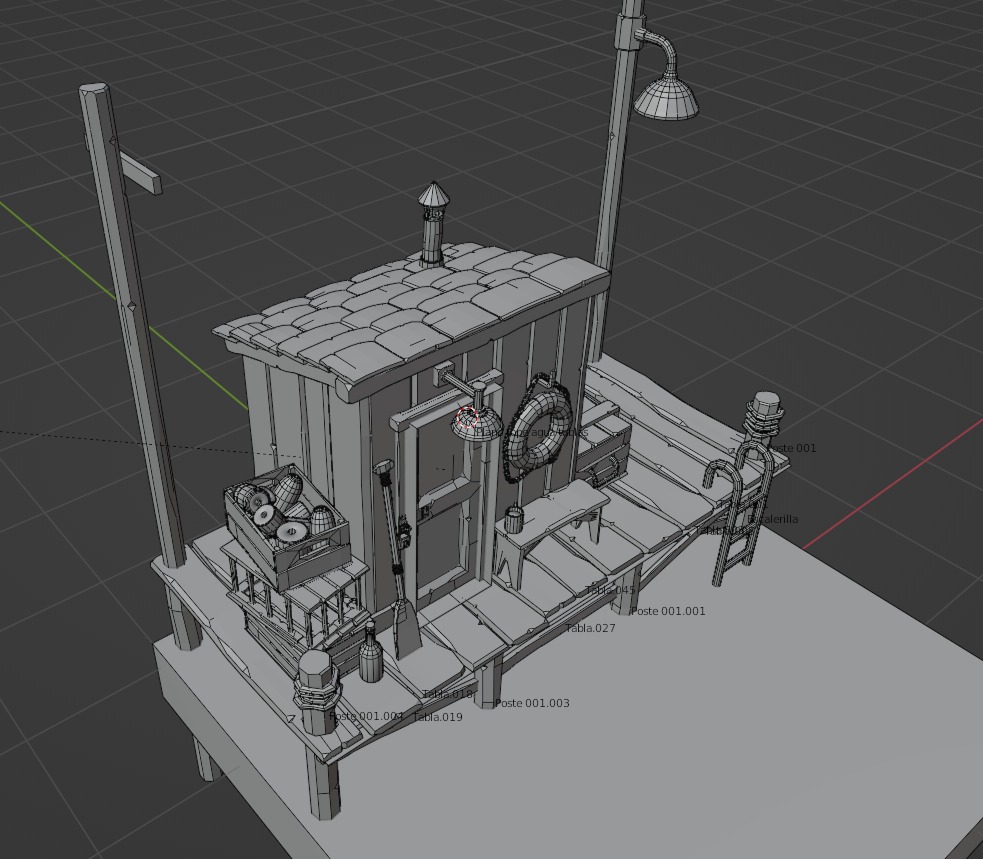 A nivel de modelado aún faltan unas cuantas cosas, la más importante meter o no un barquito y rellenar la parte derecha del embarcadero.