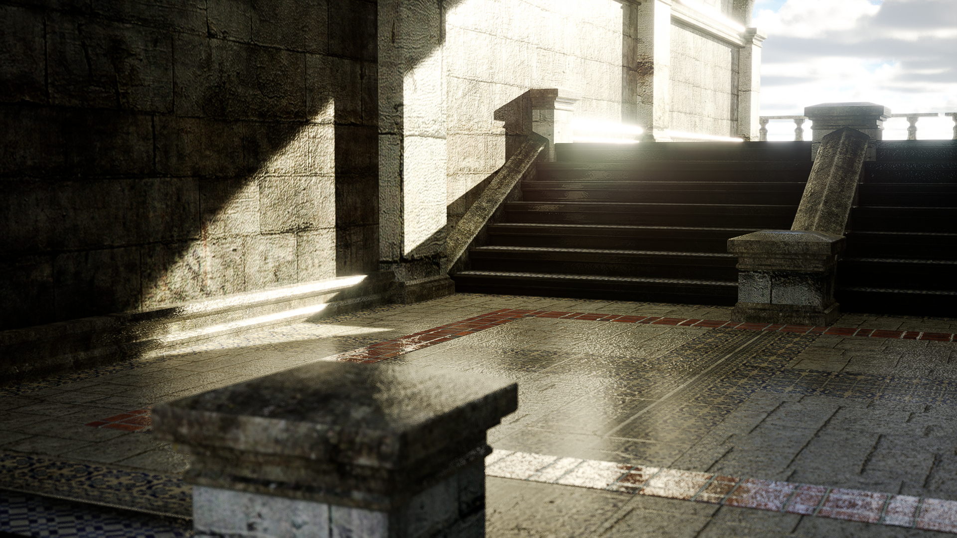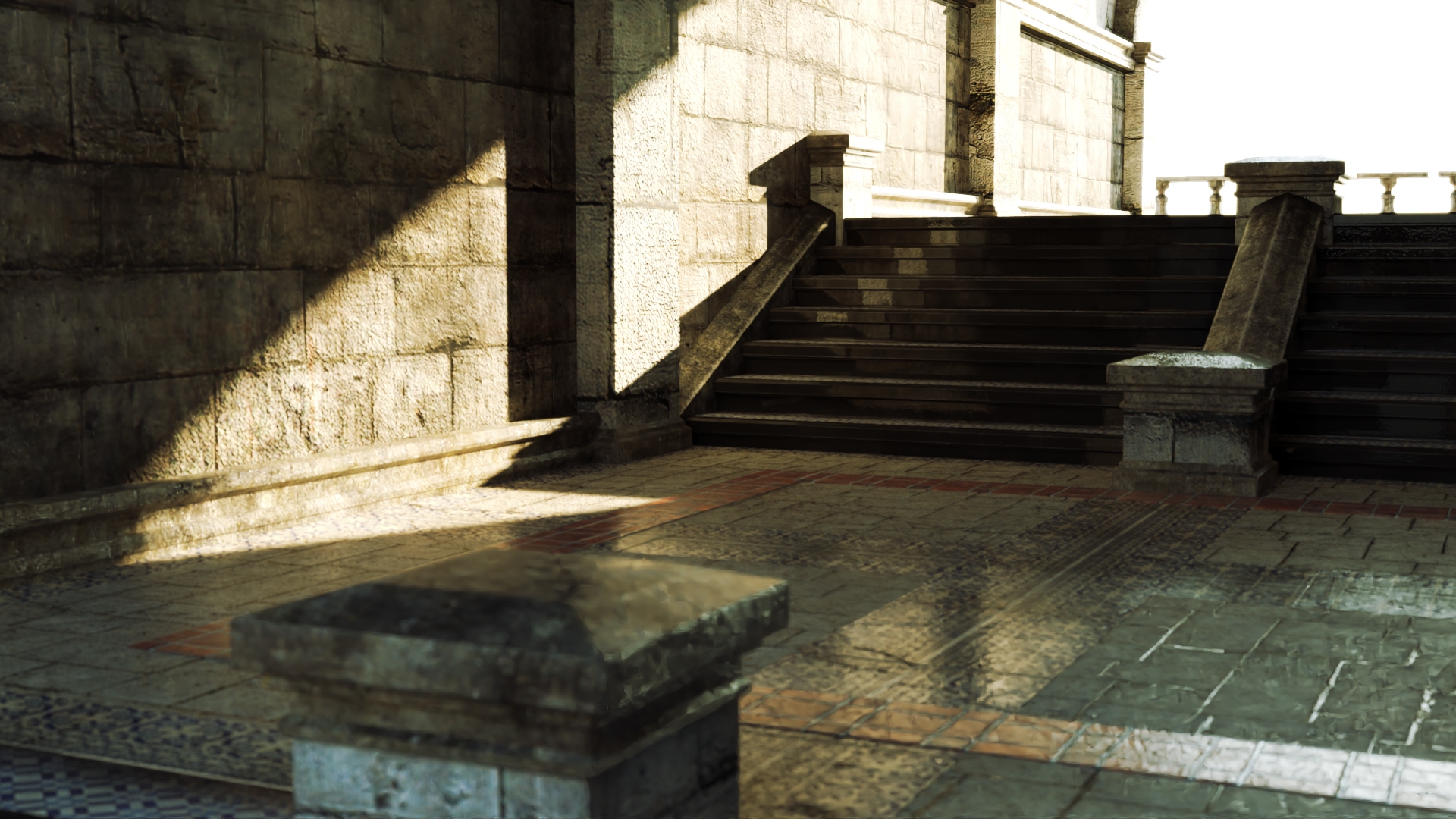 También puedes ver en la piedra de la pared del fondo cómo Vantage respeta la oclusión en las uniones de las salientes de la pared, no así en D5, donde todo es luz, dando ese típico acabado de videojuego.