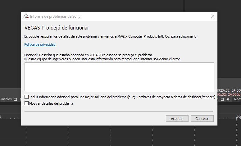 Render en Sony Vegas pro 17 no funciona.