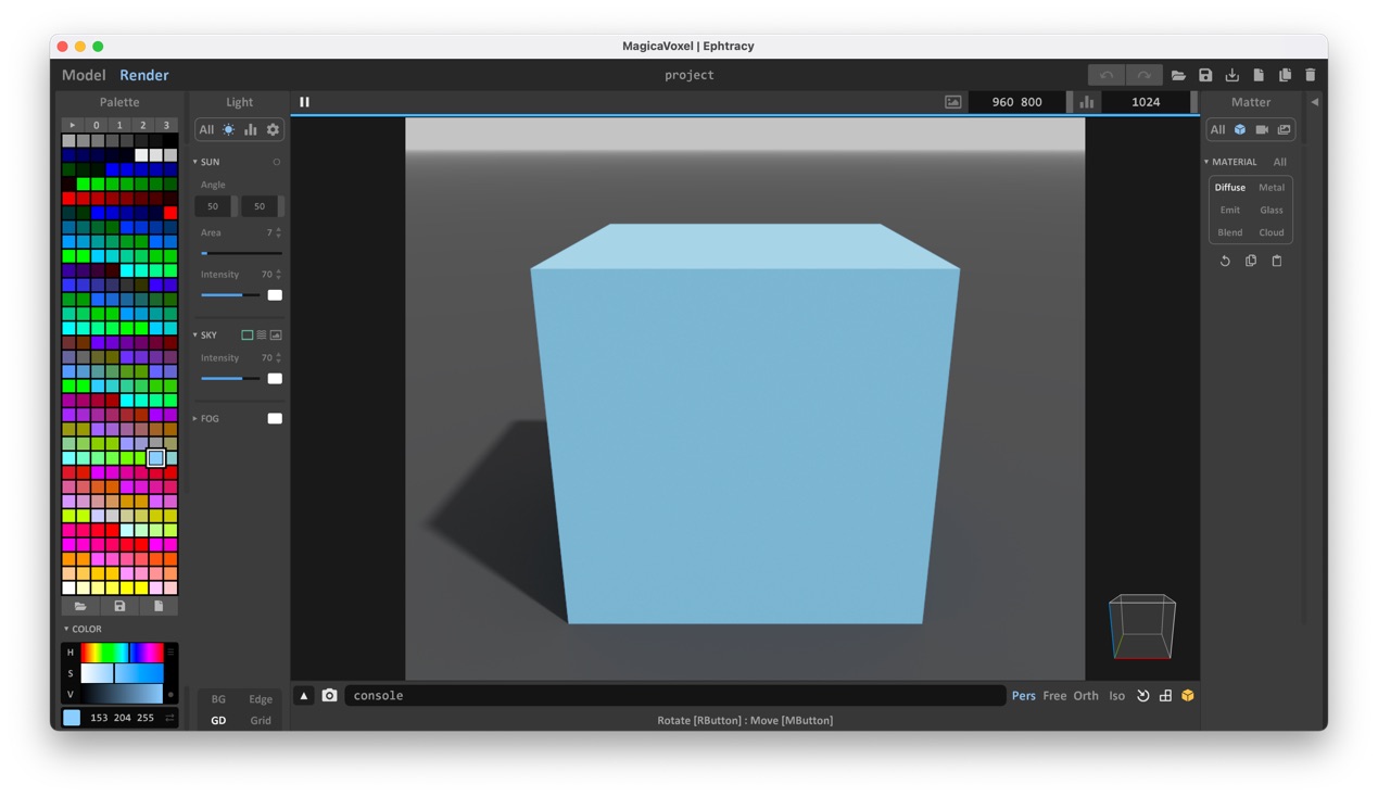MagicaVoxel tiene capacidad de renderizado